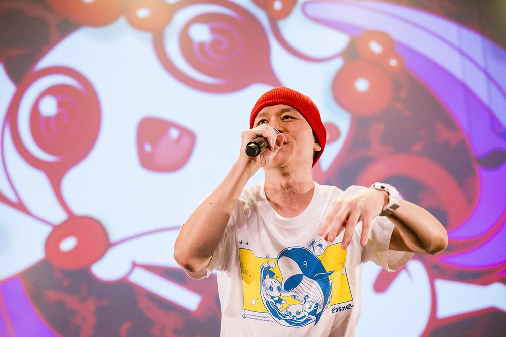 ピノキオピーは「すごいね、めっちゃいる!」と大勢の観客に出迎えられた喜びを率直な言葉で語る。そして5年ぶりにツアーを回れたことに触れ、この場に集まれたことへの感動をあらわにした。コールアンドレスポンスに「ライブっぽい! いいね!」と無邪気な笑顔を見せた後は、「今日は僕がインタビューしたいと思います」と告げ、「匿名M」へ。ミクがインタビューに答えている最中は、画面上の彼女にマイクを向ける。ミクとのツインボーカルや、打ち込みと生演奏の融合、ブースの上に鎮座するアイマイナとどうしてちゃんのぬいぐるみなど、ピノキオピーのライブはデジタルとリアルの境界線が時に小気味よいコントラストを作り、時に曖昧に溶け合う。「匿名M」には後者の心地よさが生まれていた。