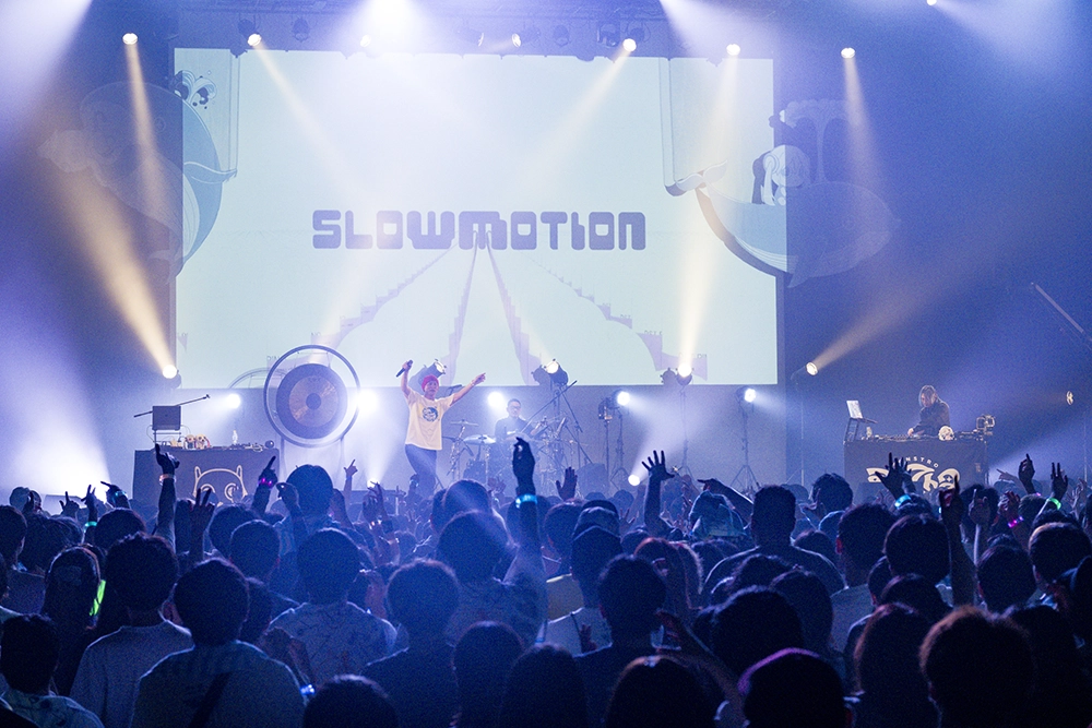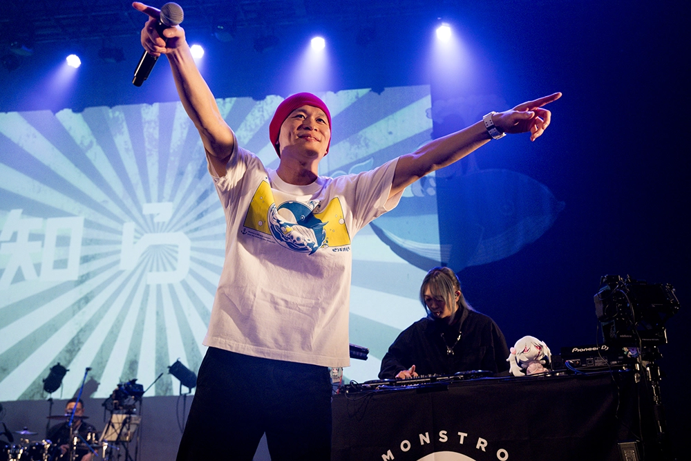 「きみも悪い人でよかった」「ノンブレス・オブリージュ」と会場を曲の奥深くへと引き込むと、「内臓ありますか」「東京マヌカン」ではグッドメロディで高揚感を生み出し、「Honjara-ke」では摩訶不思議な世界観でトランス状態に持っていく。「Mei Mei」「LOVE」と雲を突き抜けて青空を掴みに行くような空気感で魅了し、ラストの「祭りだヘイカモン」は声を張り上げての歌唱や、クジラのぬいぐるみをフロアに投げ入れるなど、祭りの狂乱を作り上げた。ドラマチックな展開は、広い海を旅するモンストロの物語を体感するようだった。