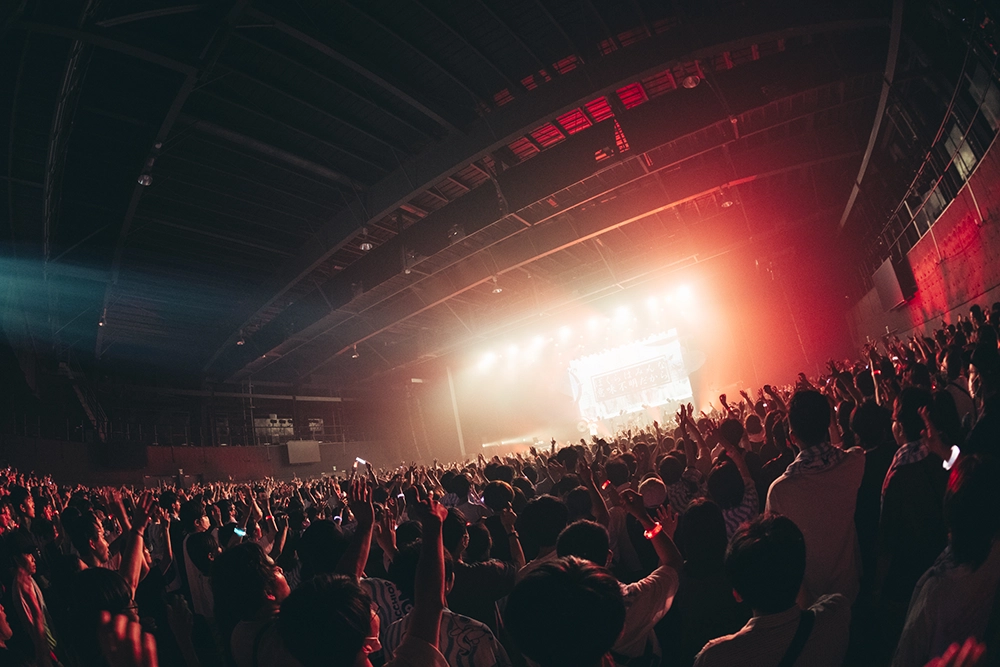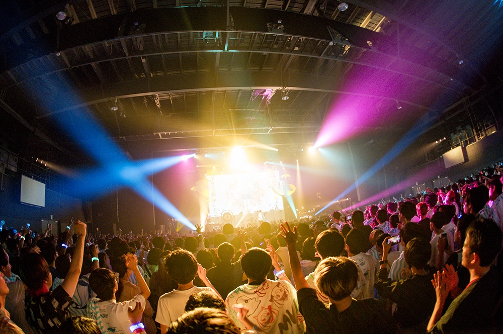 最新曲「ユーチューバー」からはじょじょに深海を漂うようなディープなセクションに入る。「頓珍漢の宴」は仄暗く陽気なムードが広がり、「ウソラセラ」はピノキオピーがメインボーカルを務めエモーショナルでセンチメンタルなメロディが琴線に触れた。その後も幻想的なサウンドとまっすぐな歌声が響く「Fireworks+」、ぬくもりと純粋性を感じさせる「eight hundred+」、観客のコールが軽やかに響いた「嘘ミーム」と、柔らかくも寂し気なミクの声が映える、感傷性がきらびやかに昇華された曲が続く。その後は「海へ行こうぜ!」というメッセージがポジティブに響いた「アポカリプスなう」、この日いちばんの巨大なコールとシンガロングが起きた「神っぽいな」、ミクスチャーロックテイストの「ぼくらはみんな意味不明」と挑発的かつハッピーな空間を作り出した。