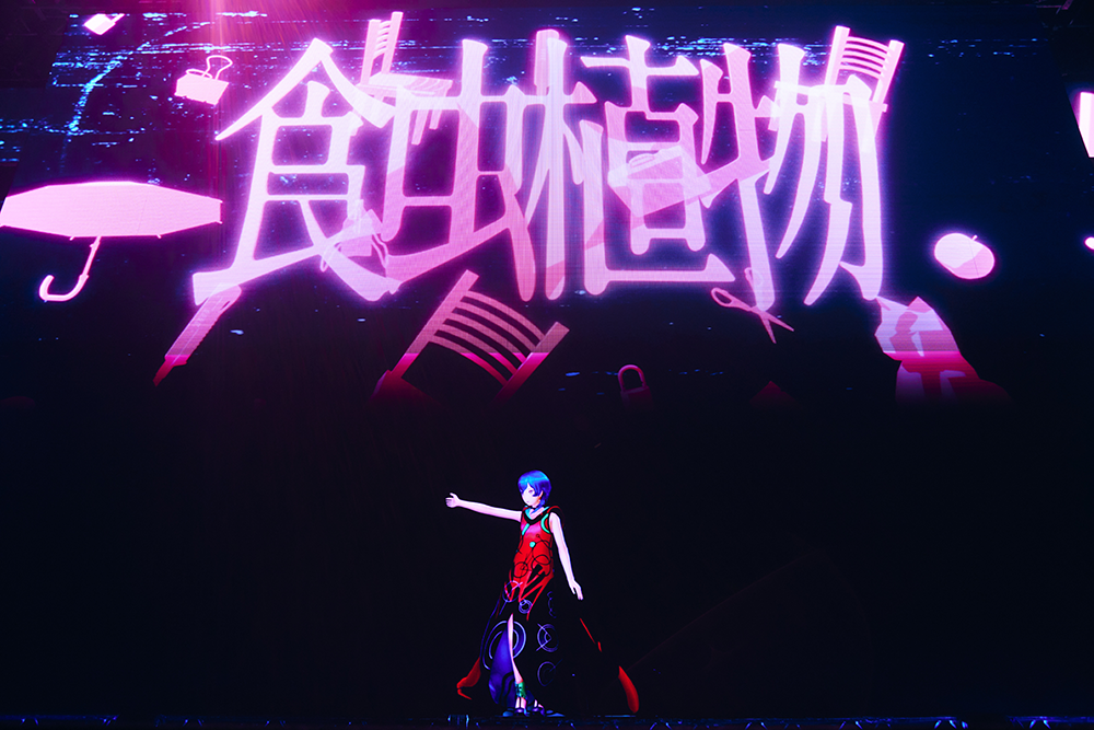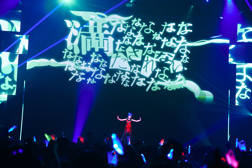 「さみしいひと」「食虫植物」と観客とシンガロングやクラップに興じ、デビュー曲「ユーエンミー」でドラマチックに楽曲を彩ると、ブリッジムービーで「Dr.Futurity」に衣装チェンジをしてダークな「えろいむ」、アダルトで落ち着いた歌声が琴線に触れる「法螺話」とディープなムードを高める。そこから迫真のポエトリーリーディングとピュアな歌声が光る「十九月」へのたたみかけは、まさしくこの日のクライマックスのひとつと言っていいだろう。ステージと観客の作り出す一体感から、観客を楽曲の世界の奥深くへと引きずり込む没入感へとなめらかにつなぐことで、聴き手側にも壮大な物語を体感するような充実が生まれた。