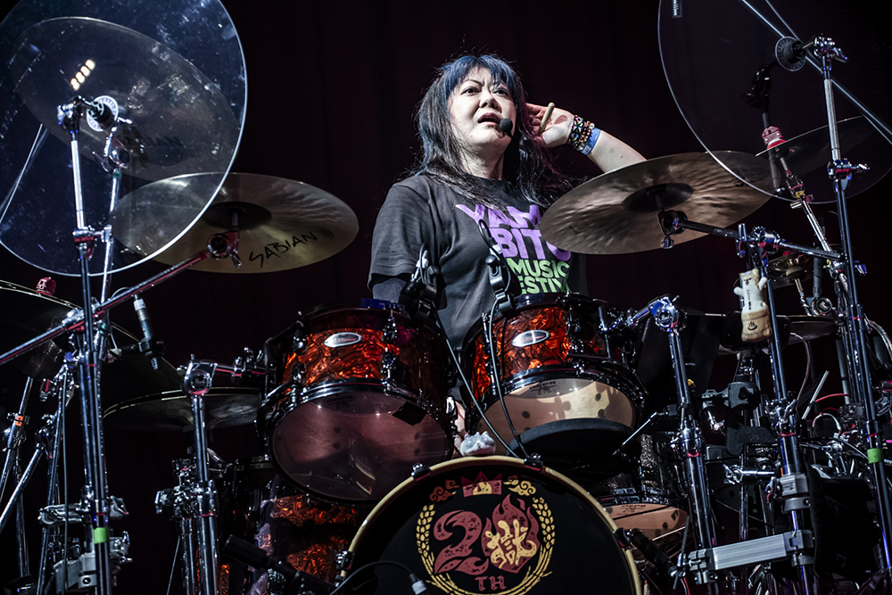 ♪うまい棒を回せ!うまい棒を回せ!とオーディエンスにうまい棒を配布し、フロア中がうまい棒を振るというバカバカしく平和的なOPナンバー「デリシャスティック」で始まった、打首獄門同好会のライブ。曲に合わせてスクワットする「筋肉マイフレンド」と全員強制参加の曲が続いて一体感を生むと、もはや広い会場はすべて打首の手中。オーディエンスの水分補給まで気遣う新曲「BUNBUN SUIBUN」を披露すると、「みんなご苦労だったな。平日の苦労を乗り越えて、今日から3連休だぞ!」と大澤敦史(Vo&Gt)が告げ、「はたらきたくない」で頑張ってるみんなの労をねぎらう。今年も全国のフェスに多数出演し、ヘヴィさとユーモアにより磨きがかかった感のある打首。ライブ終盤は「きのこたけのこ戦争」、「島国DNA」と、楽しくて美味しい曲を連投してフロアをブチアゲて、ラストは「日本の米は世界一」で堂々フィニッシュ! 『山人音楽祭』の特攻隊長としての役目をしっかり務め上げた。