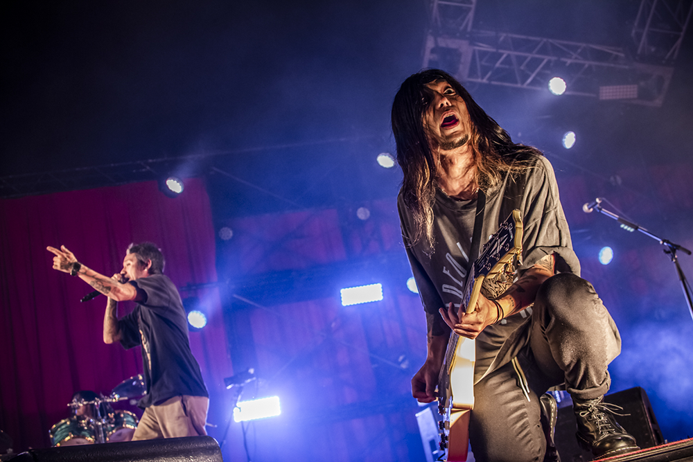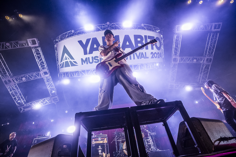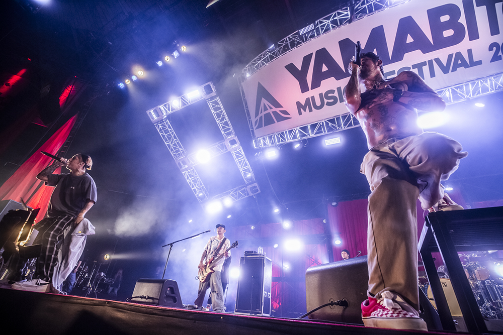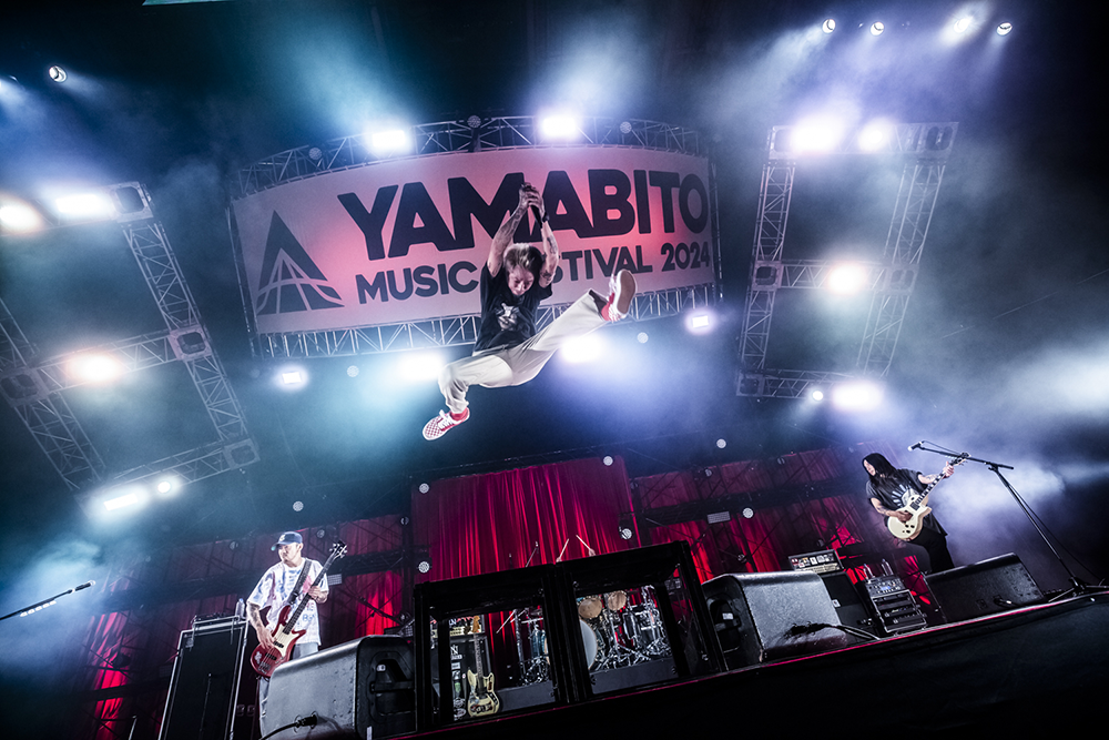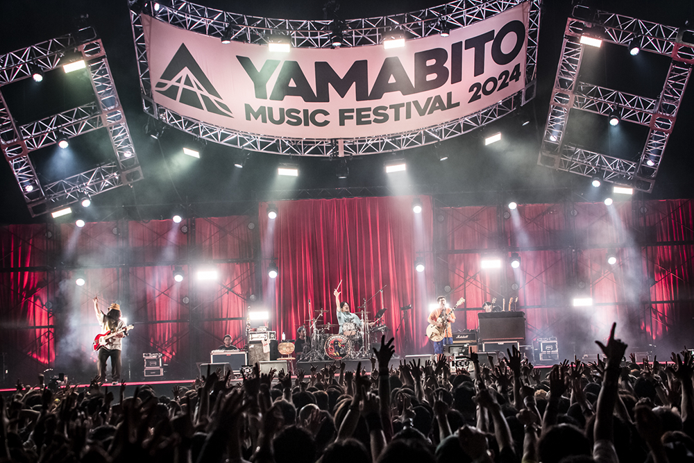 赤城ステージに移動すると、The BONESが始まったばかり。これまでなかなかタイミングが合わず、今年が『山人音楽祭』初出演となったThe BONES。「やっと出れたぞ!」とJESSE(Vo&Gt)が感慨深げに叫んで気合い十分で挑んだライブは、感情がこぼれ落ちるほど前のめりかつ攻撃的で、オーディエンスも大熱狂!「We are The BONEZ」では、「まだまだ足りねぇ」とばかりにフロアに!会場の熱をさらに上げた。完全に火の着いたオーディエンスを「New Original」でぶっ掻き回すと、嬉しそうな表情で「最高!」と声を上げる。最新曲「Straight Up feat.Kj」では、盟友・Kjをステージに呼び込んで激しく美しくドラマチックなパフォーマンスで魅せ、オーディエンスは大興奮。ラストは会場に響く大合唱が起きた「Thread & Needle」から、「来年も会おうな!」と約束して始まった「SUNTOWN」を全身全霊で届け、ステージ上でそのままぶっ倒れたJESSE。この日、命の儚さや尊さを繰り返し語っていたJESSEだったが、全身全霊のパフォーマンスからは、「だからこそ、いまだけはみんなと燃えていたい」という想いがビシバシと伝わってきた。観る者の心を強く揺さぶる、本当に素晴らしいステージだった。