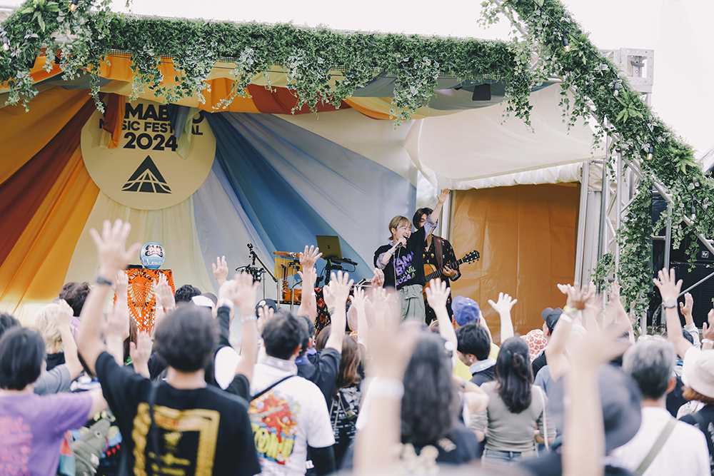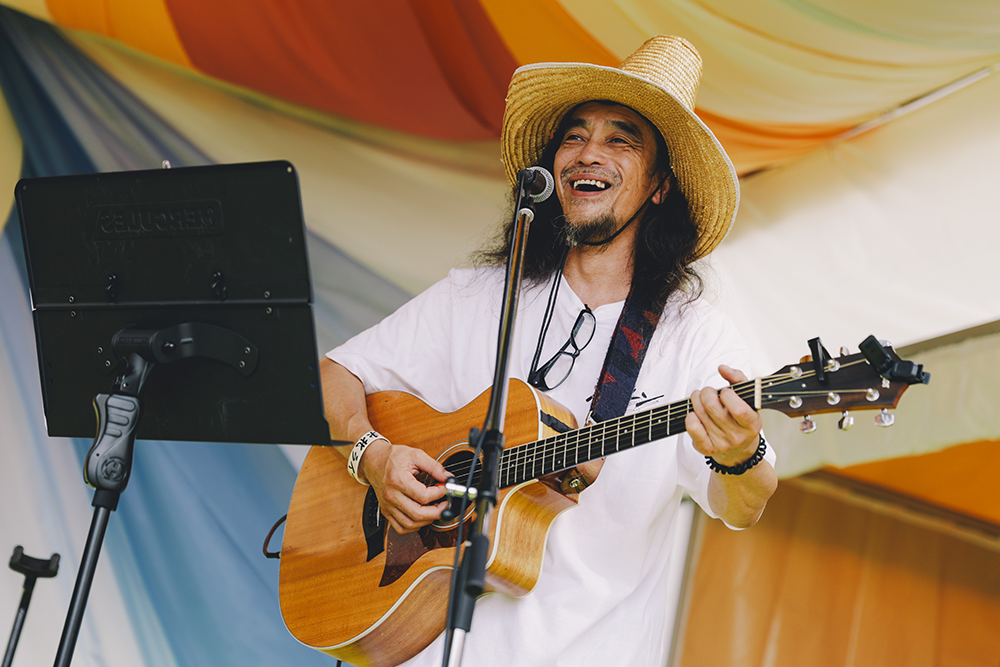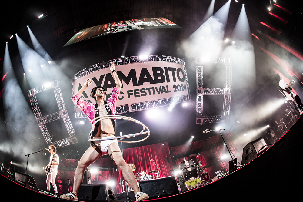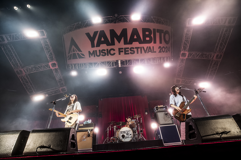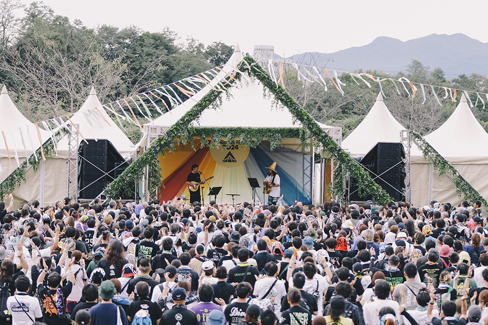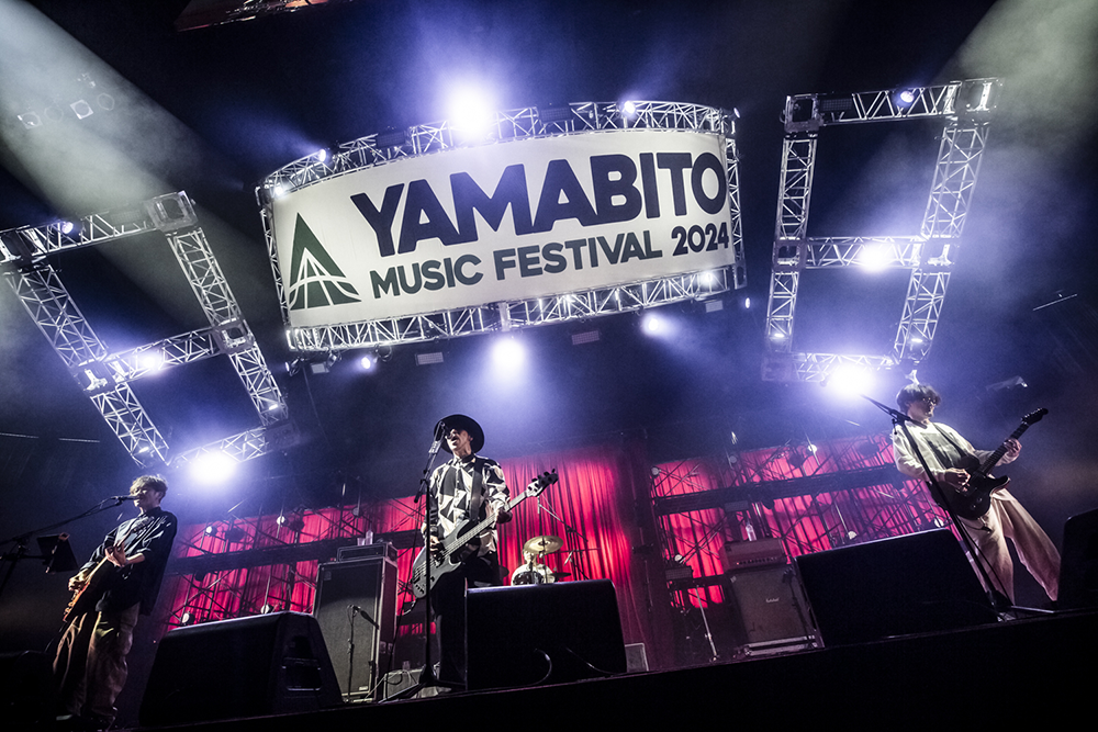 「山人、戻って来ました!」と19年以来となる出演の喜びを告げ、明るい笑顔で始まったNakamuraEmiのステージ。1曲目「Don't」でライブをスタートすると、軽快なビートに乗せたキュートで芯のある歌声と心地よく流れるフロウに、フィールドも笑顔が溢れる。「今日は雨が降ると思ってたんで選んできました」と始まった「雨のように泣いてやれ」から「スケボーマン」と続き、美しく感情豊かな歌声でオーディエンスを魅了した彼女。「『山人音楽祭』の温かいお客さんに育ててもらって、フェスが改めて好きになりました。また成長して帰って来れるように頑張ります!」と話し、YAMABITOならぬ「YAMABIKO」が始まる。彼女のリードに会場中が歌声を合わせ、心が通じ合った瞬間を見届けたところで妙義ステージを後にする。