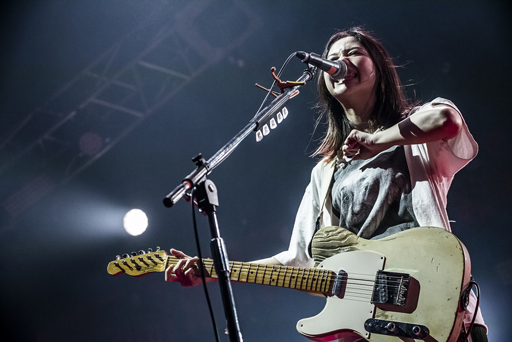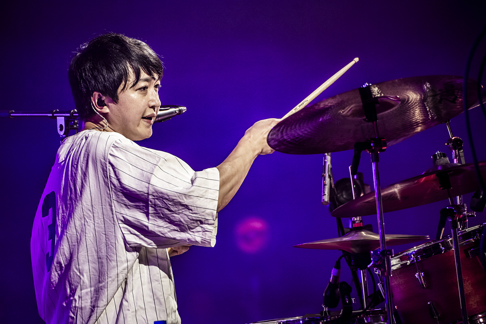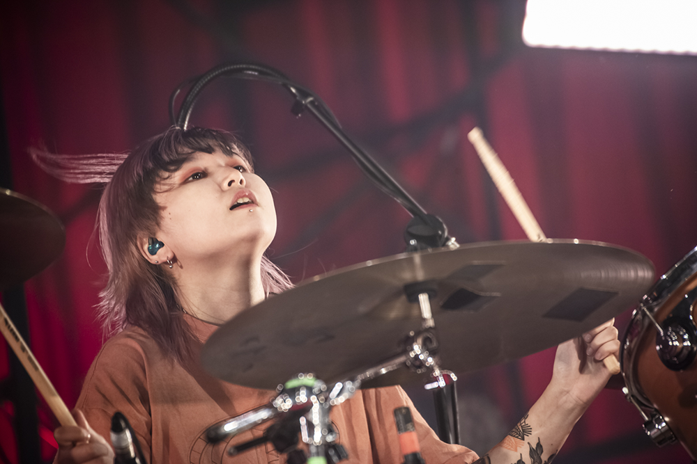 「このためにバンド始めたんじゃないか?ってくらい、達成感があります」と、上野羽有音(Vo&Gt)が会場を見渡しながら感慨深げに語り始まった、TETORAのライブ。「G-FREAKを聴いてきたからこそ、G-FREAKのライブを見てきたからこそ出来た曲です」と曲に込めた想いを伝えて「4月」が始まると、たっぷり気持ちを込めた歌と演奏が大会場に優しく響く。続いて疾走感ある「7月」で雰囲気を変えると、「私がお小遣いを貯めて買ったCDがROTTENGRAFFTYで、10-FEETのライブ見てバンド始めて……今日、カッコいいバンドしかいないんですけど!?もう、やるしかないよな!」と上野。気合十分、さらに加速していく彼女らのライブ。初めて観る人の心もグッと惹き込む強烈な求心力をもって、全力で駆け抜ける。「1mmも後悔したくない!見てて下さい、これが本気や!!」と宣言して始まった、ラスト「Loser for the future」の渾身の歌と演奏は圧巻だったし。噛みしめるように歌う<未来は今日だ>の歌詞にグッとくるばかりだった。