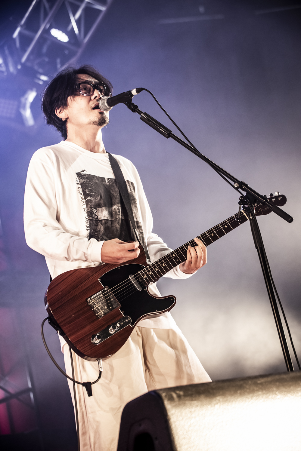 続く赤城ステージには、LOW IQ 01&THE RHYTHM MAKERS PLUSが登場!LOW IQ 01(Vo&Ba)に加え、渡邊忍(Gt)、フルカワユタカ(Gt)、山崎聖之(Dr)という豪華メンバーが広い並ぶ光景は、それだけで壮観だが、存在感あるLOW IQ 01のベース&ボーカルと息の合った演奏でオーディエンスの心をガッツリ掴んだ、1曲目「LITTLE GIANT」に続く「SNOWMAN」ではTOSHI-LOWもコーラスで参加!さらにライブ後半の「BIG LITTLE LIES」では、SCAFULL KINGのホーン隊のTGMX&AKIRATTも登場し、バンド界のスーパースターが次々と集結するアベンジャーズ状態。それぞれのプレイやバンドアンサンブルの素晴らしさは言わずもがな、新旧織り交ぜた名曲を惜しみなく披露するセットリストも凄まじいし、広いステージを走り回る渡邊がフルカワにちょっかい出したりと、自由すぎるステージも楽しいし。見どころ満載のライブは、LOW IQ 01無双!クライマックスで演奏されたSUPER STUPID「WHAT’S BORDERLESS?」は、僕を含む古くからのファンは大興奮。ガッツリ盛り上げて、夢みたいなステージを締めくくった。