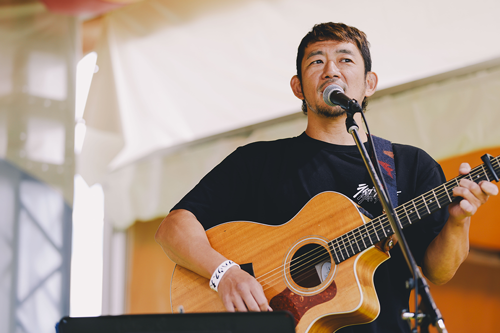 「あいつもほら、忙しいからさ。俺一人で頑張るから、来なくていいよって言っちゃったんだ」と、フィールドを埋める観客を前に一人で登場したTOSHI-LOW。「大したヒット曲は無いですが、この曲くらいは」と、G-FREAK FACTORY「ダディ・ダーリン」を歌い始め、驚きと笑いに包まれて始まった妙義ステージのライブゾーン(TOSHI-LOW&茂木洋晃)のステージ。Bメロの頭、サビに入るタイミングと、歌に加わろうと何度もステージに登場するも、そのたびTOSHI-LOWに制止されて、舞台袖に戻っていく茂木。そのバツの悪そうな顔と間の良さに笑いが起きる中、結局、最後まで一人で歌いきったTOSHI-LOW。ようやくライブゾーンの2人がステージに揃うと、「すげぇいい曲だった」(茂木)「いや、大したことねぇよ。あの曲しかねぇから盛り上がんねぇんだよ」(TOSHI-LOW)なんて自然体のトークから、「Pressure Drop」や「ナオミの夢」のカバーを披露。野外によく似合うアコースティックのサウンドと心地よいハーモニーで聴かせると、茂木のリクエストでOAU「朝焼けの歌」を演奏。しっかり魅せ場を作ると、ラストはTOSHI-LOWの演奏に乗せて、茂木が「スローバラード」を気持ちいっぱいに歌い上げる。同じ1974年11月9日生まれ、兄弟と呼び合う二人の仲の良さがよく見える温かく楽しい時間だった。