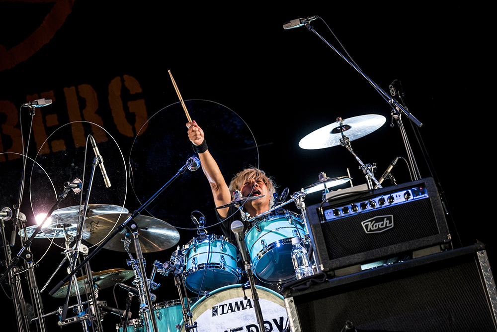 先陣を切るのはLINDBERGだ。オーバーサイズのボーダーシャツ、タイトなブラックジーンズとラバーソウルで決めた渡瀬マキを中心に、キーボードに佐藤“darling”達也を加えた鉄壁の布陣でぶっ飛ばす。「Over the Top」「JUMP」と、知ってる曲ばかりだから誰でも乗れる。いや、知らなくったって乗れる。LINDBERGの曲は、時代を超えてキャッチーなメロディとリズムと言葉と共感しかない。渡瀬マキがマイクを客席に向け、クラップを求め、ジャンプし、「さぁみなさん一緒に!」と煽ればすぐに一体感が生まれる。