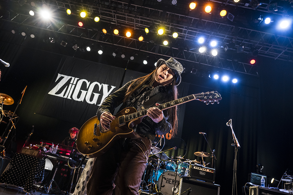 フロムLINDBERG、平川達也!「DON'T STOP BELIEVING」が聴けるだけで盛り上がるのに、そこに平川が来れば火に油だ。期待に応えて前に出てリードを弾きまくり、ZIGGYファンの歓声を浴びる平川は男前だ。さらに「今夜LOVE SONGを」「SWING,DRIVE,ROCK'N'ROLL」と近年の曲をプレーして、結成40年を迎えても変わらぬZIGGYイズム健在を示すと、さぁいよいよこの人の出番だ。
