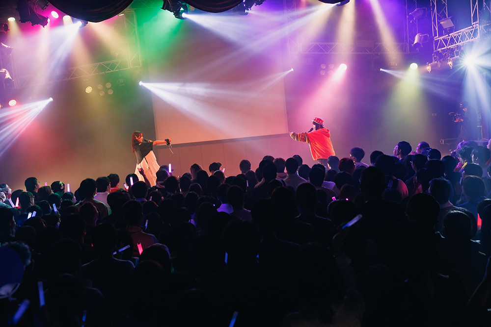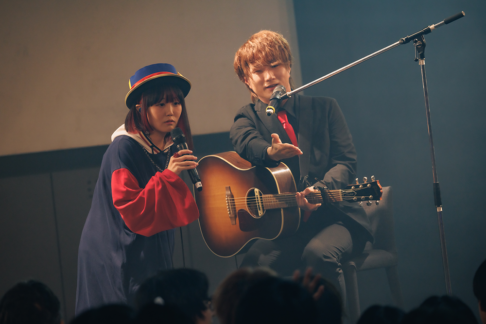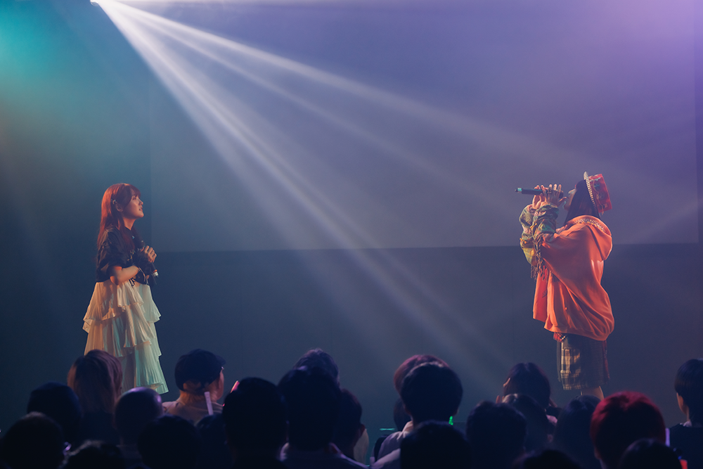 映像が終わり明転すると、なすお☆とりみーが現れて「私たち、絶対前世姉妹だよね!」と声を合わせると二人の名義で歌っている「絶対前世姉妹!兄弟!」。曲頭の歌い出し後に二人で「なすりみで~す!」とごあいさつ。速いテンポで、セリフの掛け合いもあるかわいい曲を踊りながら歌った。公私で仲が良く、ディズニーランドに行った動画などを上げているが、なすお☆とりみーが同一人物じゃないかというコメントが多いのだそう。二人共、声が似ているという自覚もあり、後ろを向いて「どっちが歌っているでしょう?」クイズも出題。どちらが歌うのか決めていなかったり、何度かやり直す様子がほほえましい。そしてなすお☆が初めて作詞を手掛けた、りみーの曲「この物語はフィクションです」(ドラマ『埼玉のホスト』挿入歌)へ。ステージで一緒に歌うのもこの日が初めてとのこと。アコギの音色が心地いい、ミディアム系のおちついた曲調のせつないラブソングで、二人の歌声やユニゾンの美しさにお客さんは二人を見つめて、じっくり耳を傾けた。