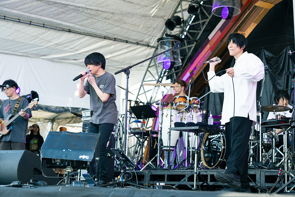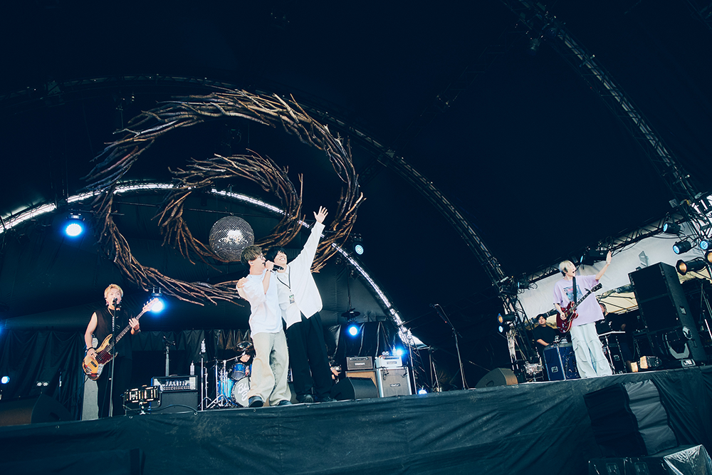 というわけで、SHE’Sやキタニタツヤなど、先に出るアクトたちは、MCでandropにお祝いの言葉を贈る。SHE’S井上竜馬曰く、「一緒にライブをやったりシングルを出したりしている、お世話になっている先輩」。キタニタツヤは、andropを高校生の頃に聴いていた世代だそうだ。BLUE ENCOUNTのステージには、「バッドパラドックス」で、andropの内澤崇仁と前田恭介が飛び入りした。