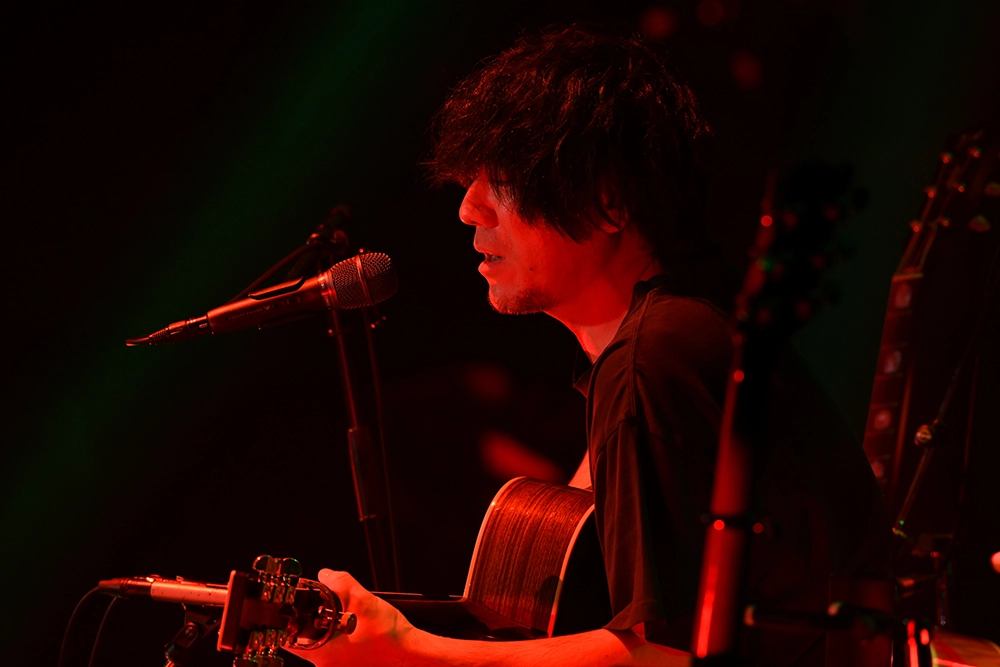 「日曜日」から「ささえる人の歌」へ。セトリはアルバムで言うとメジャーセカンド、サードあたりの曲が多く、依与吏のパーソナリティが色濃く出た個人的な曲が目立つ。ギター1本で歌われるとさらに懐かしくて切なさが増す。一転して2022年の楽曲「ベルベットの詩」は観客にコーラスを頼み、人の声が持つ強さと温かさで全員の心を一つにする。