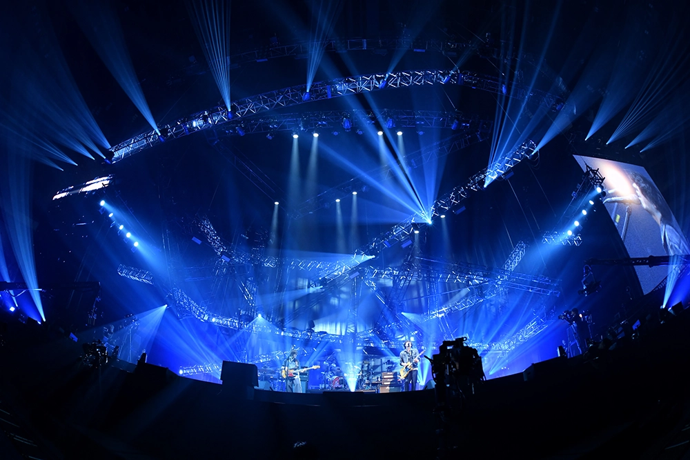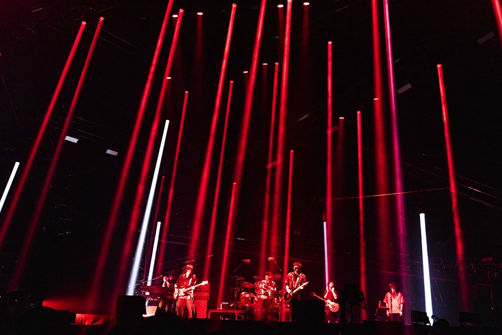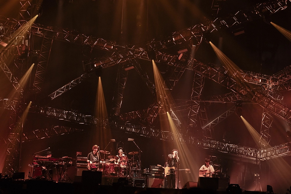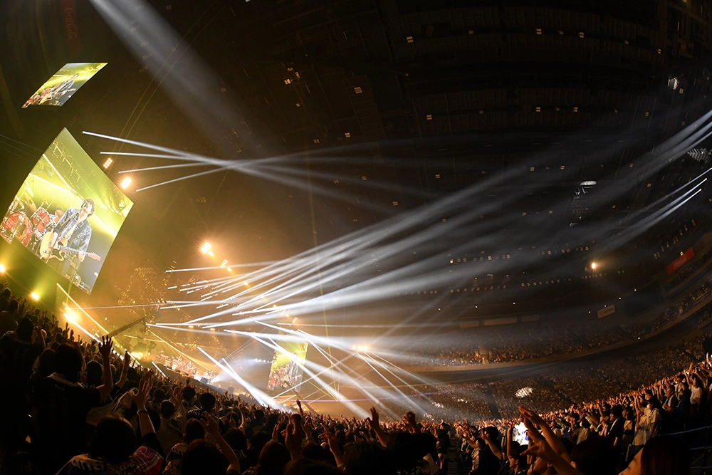 およそ30分弱の転換を経て、back numberの登場だ。サポートを含む6名がステージに立つ。ジャケットを羽織った依与吏が「行くぞ!」と叫ぶ。大量のレーザービームとすべての照明に灯りが入り、光の粒と音の波が押し寄せる。1曲目は「高嶺の花子さん」。観客のジャンプでスタンドが大きく揺れる。激しくロックする「大不正解」から「アイラブユー」へ、大ヒット連発で一気に飛ばす。壮麗な照明、音響、バンドの演奏も含めて全員の気迫が凄い。これが「服を着た曲」だとしたら、着飾ることも素晴らしい。