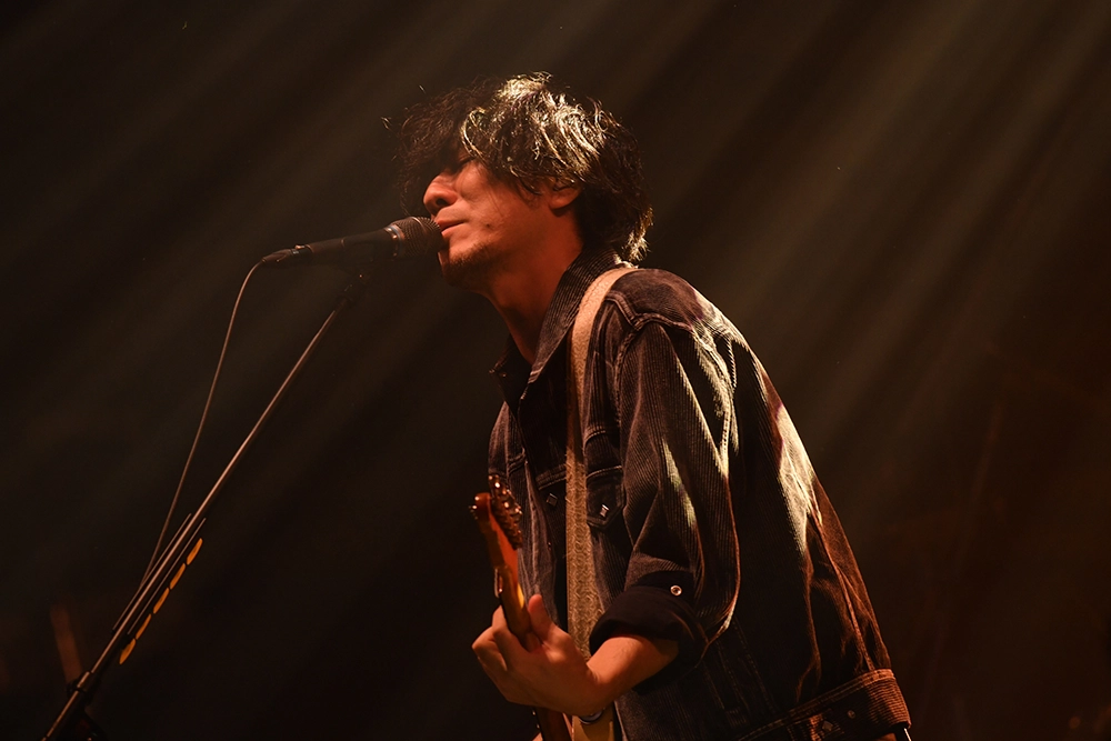 生まれたままの曲の、丸裸を見せること。おしゃれな服を着ていない曲たちは、こんな感じですよと伝えること──。このライブに臨む思いを曲間で語りながら、淡々としかし濃厚に時間は進む。「化粧してない曲を」という表現が、次の曲「助演女優症」の主人公の気持ちにぴたりと重なり合う。曲を1曲書くとすぐに忘れ、あとでいつも「ほんとにオレが書いたの?」と思うらしい。「君がドアを閉めた後」を全力で歌い終え、「いい作詞作曲家だよね」と自画自賛で拍手を煽る。照れながら、でも胸を張りながら、飾らない態度が依与吏らしい。