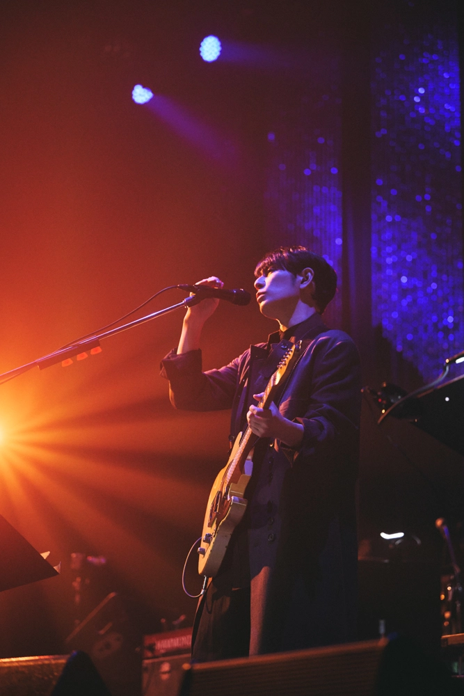 続いては、四つ打ちキックのリズムからの「BETWEEN SLEEP AND AWAKE」。つまり、11月6日にリリースされたばかりのニューシングル『BETWEEN SLEEP AND AWAKE』の2曲を、最初に歌ったわけである。「HEAVENLY」は2019年頃から、「BETWEEN SLEEP AND AWAKE」は1年前のこの『“Now What Can I see?~Drunk Garden~”』から、ライブにて初披露されてきた曲だが、このように冒頭の「つかみ」の部分に続けて配置されると、なんだかとても新鮮に響く。「BETWEEN SLEEP AND AWAKE」では、曲に合わせてハンドクラップが広がった。