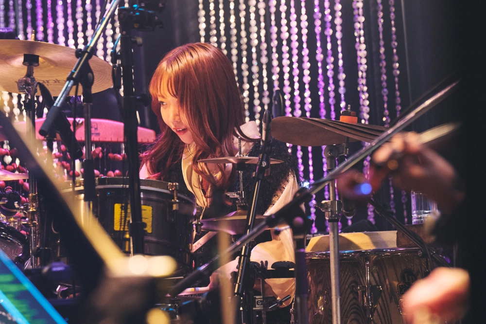 今年のメンバーは、TRI4THから初参加の関谷友貴(Bass)で、それ以外はDr.kyOn(Keyboards, Backing Vocal)、木暮晋也(Guitar, Backing Vocal)、真城めぐみ(Backing Vocal, Percussion)、山下あすか(Percussion, Backing Vocal)、という不動のメンバー。そこに、谷崎舞(Violin, Viola)と吉良都(Cello)という弦が加わった編成である。