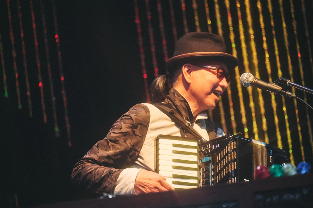 というわけで、ここから「いかれたBABY」(フィッシュマンズ)「CHRISTMAS TIME IN BLUE」(佐野元春)、そして初披露された「MERRY X’MAS IN SUMMER」(KUWATA BAND)と、レゲエ/ダブ方面のカバー曲が3曲続く。この3曲を、この楽器編成のこのバンドが演奏して、堂珍が歌うとこんなマジカルなことになるのか、ということがつくづくわかる。