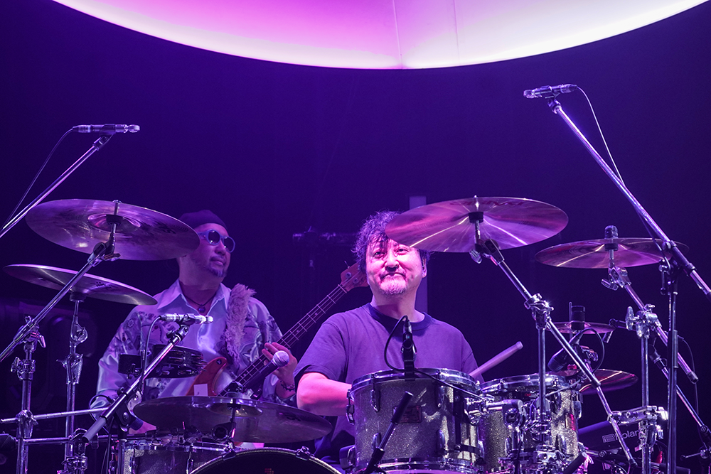 見るからにやる気満々のBlaise、にこやかに微笑むMaynard、ぐいぐい動くDICK、どっしり支えるTAX、そしてサポートキーボードのミスターこと渡邊一郎。いつメンで固めた鉄壁のラインナップで、1曲目「Scramble」から5曲目「Fashion」まで、序盤はアルバム『CIRCLES』から曲順そのままでぐんぐん飛ばす。特にライブで聴きたかった「HYLMN」は、ナマで体感すると音圧と迫力が段違いで、そこらのハードロックより遥かにヘヴィ。秋になっても飽きない「O.G. Summer」は、DICKのベースが驚くほどクリアでファンキー。洋楽バンドみたいに音が良くてかっこいいJ-POPバンド。って、そりゃそうか。