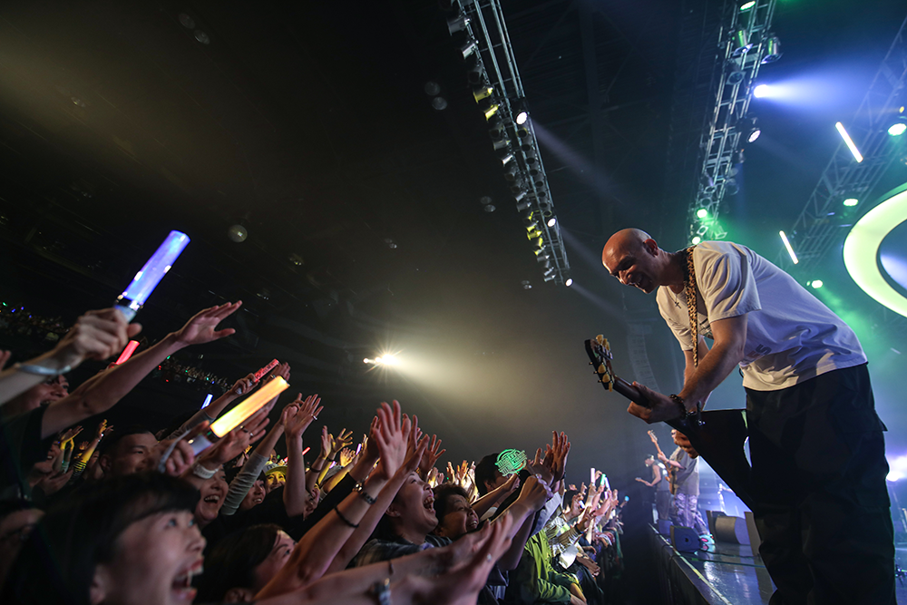 ライブが折り返し地点を超えると、懐かしい曲たちをファンと共有する時間が来た。「Sunshine」「Around The World」「空はまるで」等々、代表曲をたっぷりやる。「Sunshine」を歌い終えたBlaiseが「懐かしいですよね、この曲」とつぶやく。「HALO」はこのツアー初登場の1曲で、Maynardのギターソロがばっちり決まった。