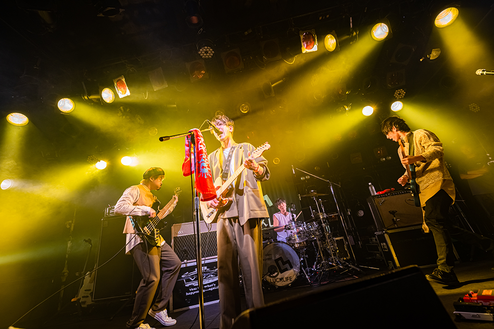 観客は高らかなシンガロングでこの日を迎えた喜びをあらわにし、「初めの一歩」ではそれに加えてコールやクラップでバンドの演奏に華を添える。今まで観たラックライフのライブのなかで最もフロアに活気が溢れていたように感じたのは、渋谷CLUB QUATTROのサイズ感や、ラックライフにとって久しぶりのツアーであることも影響しているのだろうか。観客からの惜しみない愛情のエネルギーを受けたメンバーはさらに白熱し、「サニーデイ」はその名の通り晴れ渡る空のようにすがすがしい音を鳴らした。
