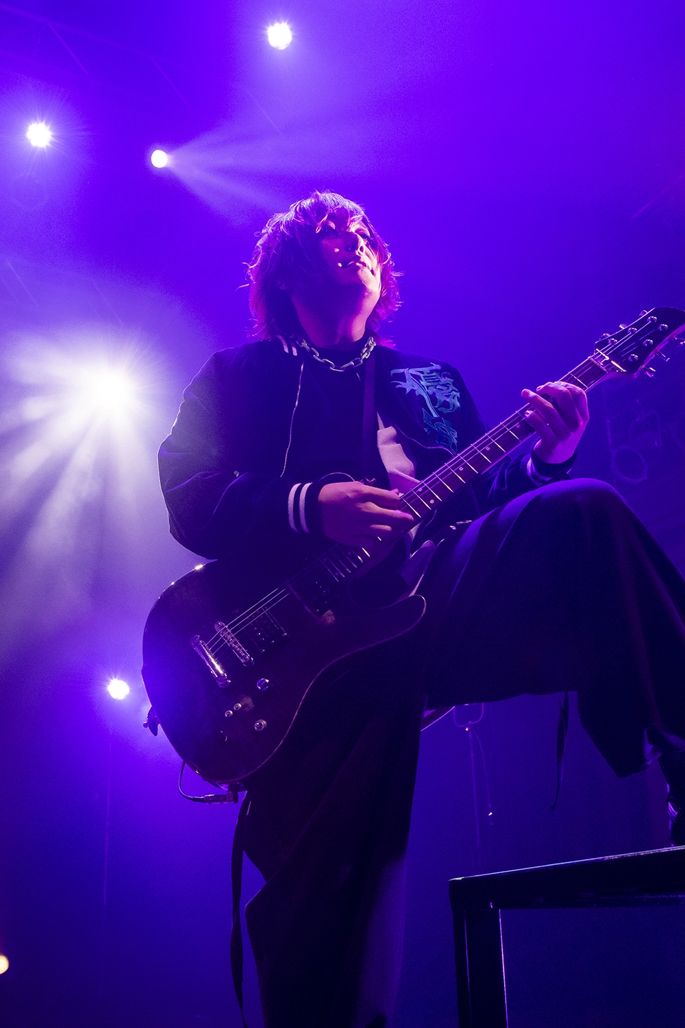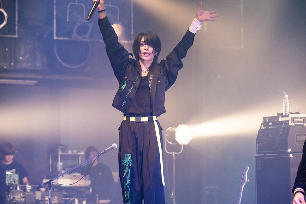 ややもすればバンドの世界観がぐちゃぐちゃになってしまいそうなところだが、そうなることなく、180度真逆のベクトルをフルに活かせているところは、前述した演奏力や、咲がステージで伝えるメッセージがバンドの軸にしっかりとあるからだろう。「蝶王」や「暴れ少女」では楽器隊のダイナミックなソロ回しが飛び出せば、「勝て」では咲が2本のマイクを巧みに使い分けながら歌を届ける。求心力抜群の言葉もより熱と説得力を増していき、へばるどころかピークを延々と更新していく状況に、「間違いなく過去イチだったぞ!」と、咲はフロアを讃えていた。「これからも俺は闇のままで生きていくから、お前もお前のままで走れ! どうかそのまま、自分をいじめる自分を、自分を憎む自分を許して、このEASTの外に持って帰ってやってください! 俺らは闇の中でしか生まれない言葉、闇の中にしか咲かない花を咲かせていくんで、またいつでも遊びに来いよ!」。