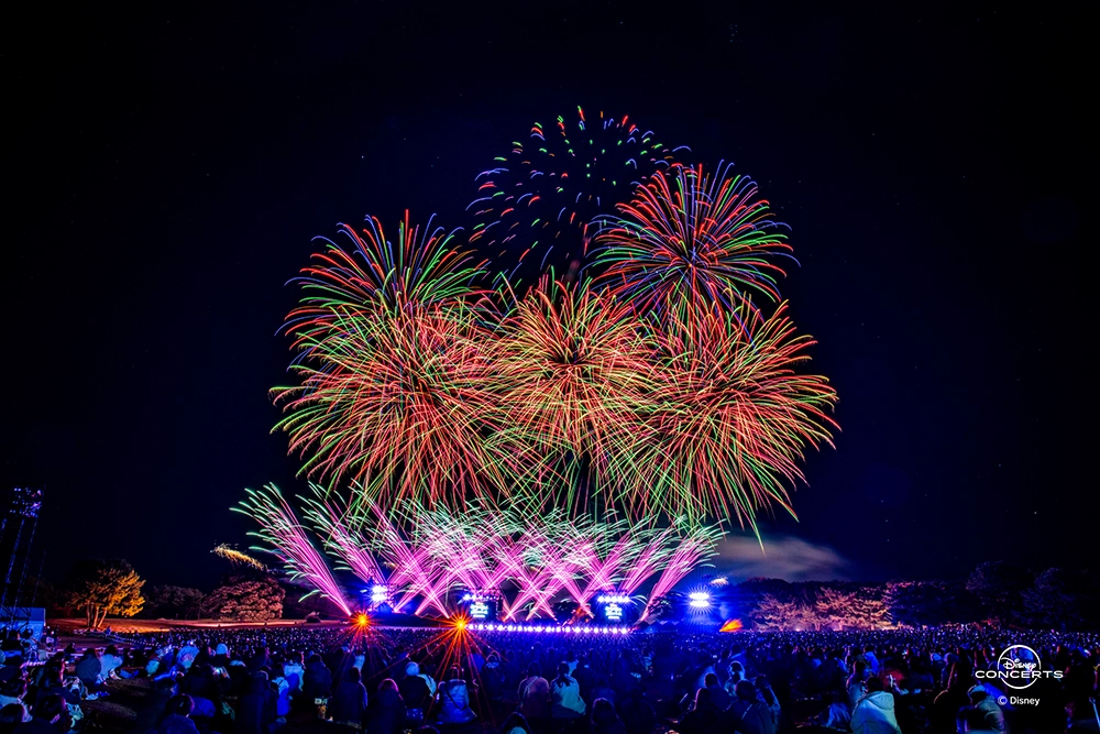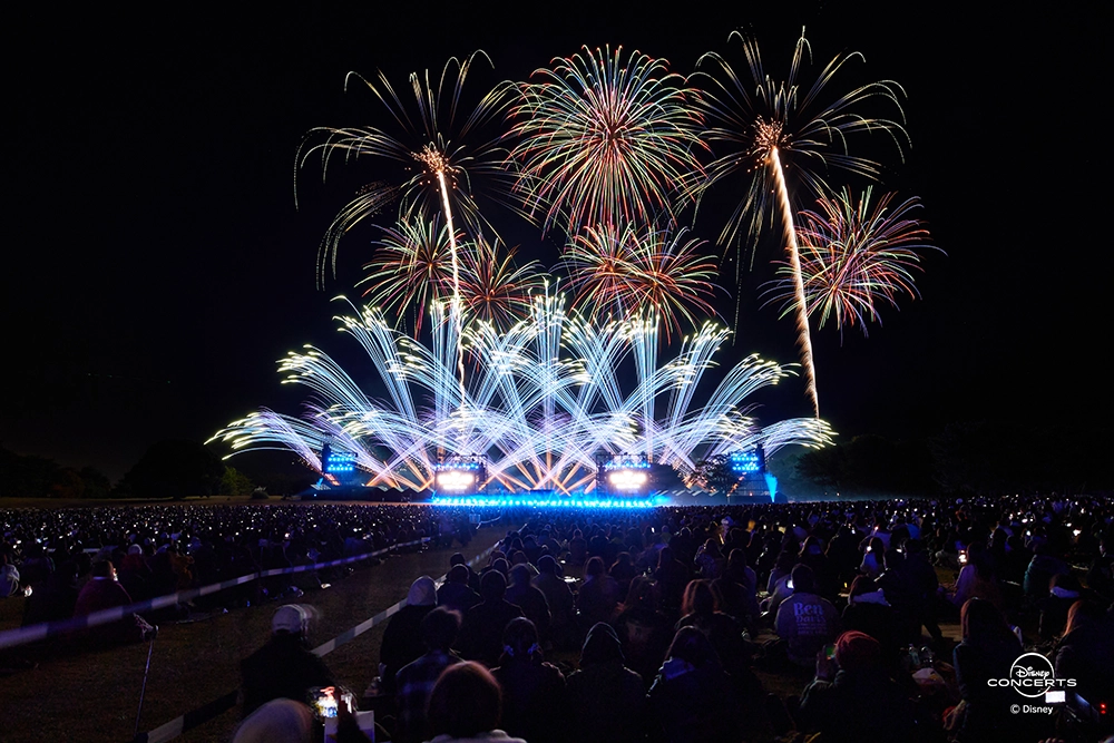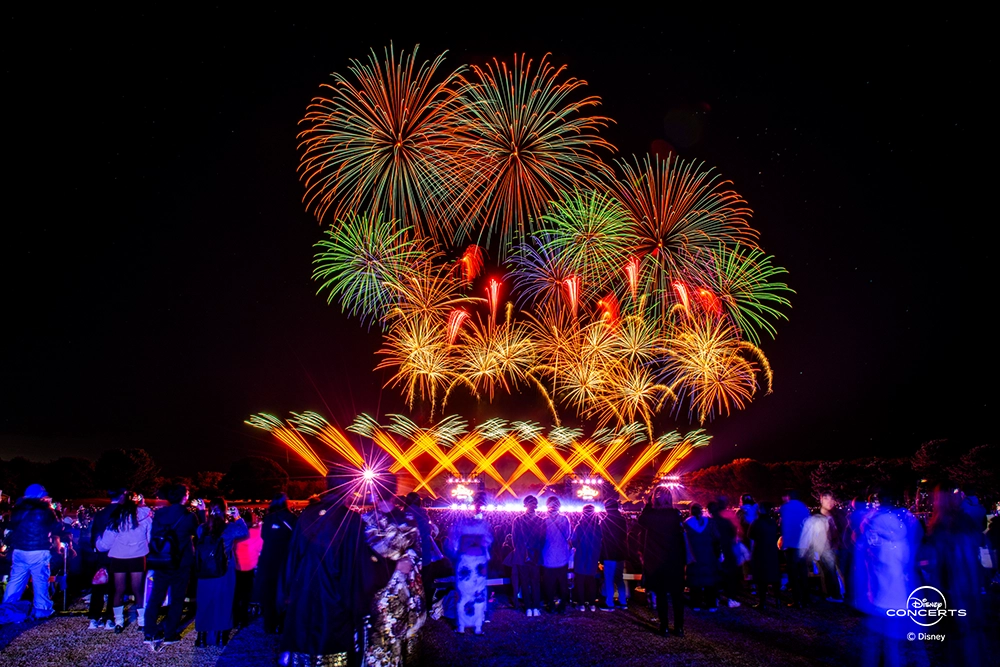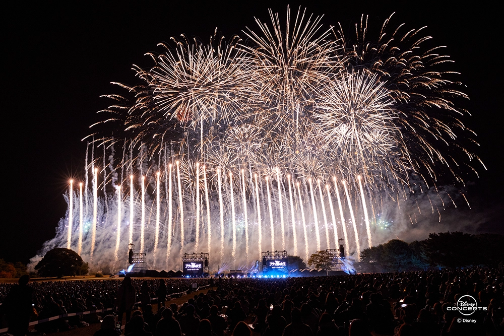 ディズニーの数々の名曲と花火を、上質な音響システムと最新技術でシンクロさせる音楽と花火のエンターテイメント。夜空いっぱいに広がる、夢と魔法の物語の世界へ。日本劇場公開から10周年を迎えた『アナと雪の女王』を中心に、時代を超えて愛されるディズニー音楽の数々を、迫力ある花火とともにお楽しむことができる「ディズニー ミュージック&ファイヤーワークス2024」が大阪、山梨、鹿児島での公演を経て、ついにファイナルとなる茨城公演を迎えた。茨城・ひたちなか海浜公園公演は11月30日(土)に開催され、会場に集まった15,000人が壮大な夜空のショーに酔いしれた。夢と魔法の物語を彩ってきた数々の名曲とシンクロして打ちあがる、12,000発もの花火が夜空を彩る「ディズニー ミュージック&ファイヤーワークス2024」の最終日レポートが到着した。