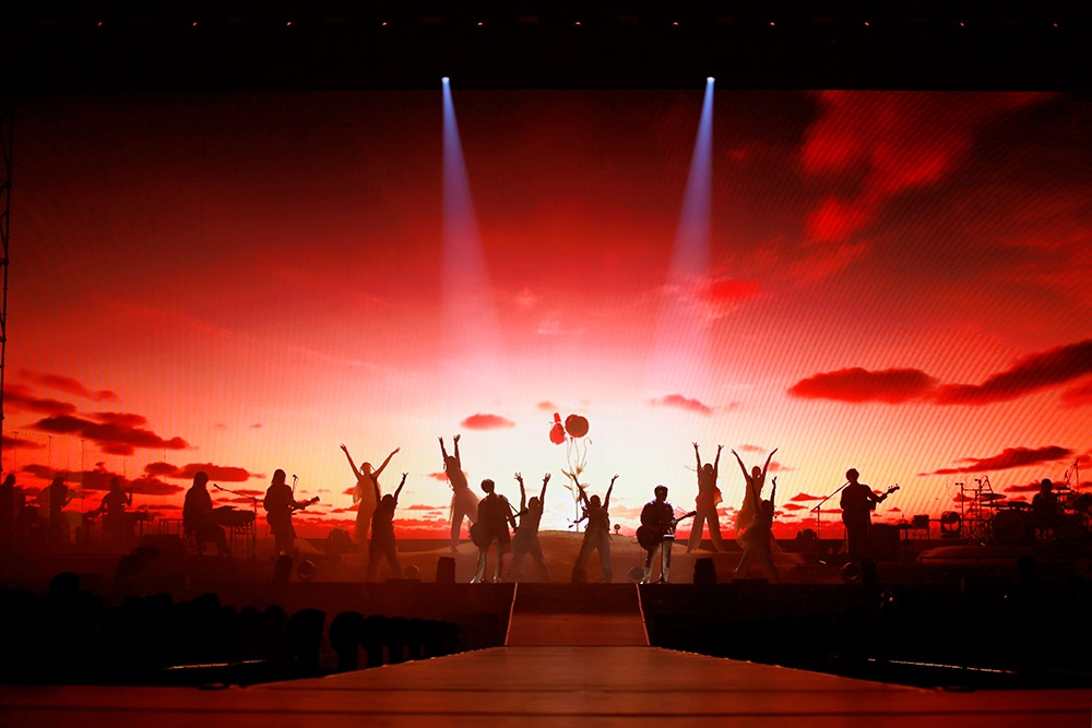 ゆずの2人の歌と演奏、バンドの演奏はもちろんのこと、映像、照明、フラワーアートを軸とした舞台セット、フラワーダンサーズのダンス、衣装など、コンサート作りに参加している人々の総力を結集して、極上のエンターテインメントショーを作り上げていたのだ。“アート”と書くと、小難しい印象があるかもしれないが、ひたすら楽しくて温かくて親しみやすいコンサートだ。