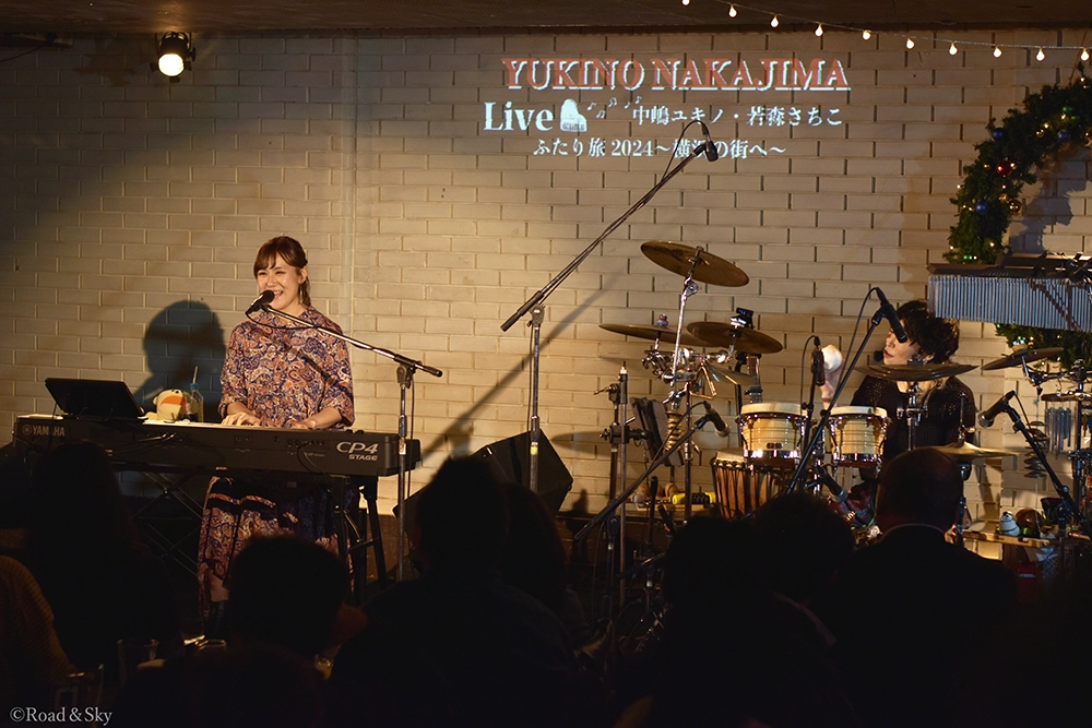 シンガーソングライターの中嶋ユキノが、パーカッショニストの若森さちことともに回るアコースティックツアー「中嶋ユキノ ふたり旅」。2024年の開催地には新潟、松山、横浜の3都市が選ばれた。ツアーファイナルの横浜は彼女が人生初のワンマンライブを開催した地であり、彼女が横浜でライブを開催するのはその日以来、19年ぶりだ。さらに会場のTHUMBS UPは「ふたり旅2022夏〜あなたの街へ〜」で訪れるはずだったものの本人の新型コロナウイルス感染症罹患により中止になったという過去もある。そんな因縁の地で彼女を待っていたのは、観客がひしめき合いながらステージを煌びやかな瞳で見つめる、満員のフロアだった。