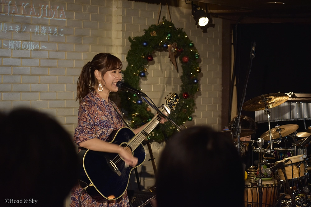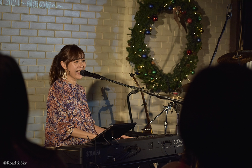 会場はアメリカンテイストのレストラン&バーで、上下2段でステージを取り囲むようにテーブル席が配備される。この時期ならではのクリスマスの装飾も愛らしい。年季の入った趣のある家具や展示の数々と暖色系の照明、最前テーブルはステージとの距離が1m前後といった臨場感と、開演前からホームパーティーを彷彿とさせるアットホームな空間が広がっていた。