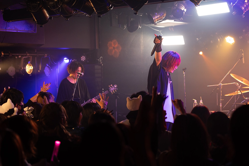 明るくポップな「MAKE OUR DAYS!!」が始まると、場内にはたちまちアゲアゲムードと笑顔が広がり、オーディエンスは指を立てながら“1day 2day~”を歌って大はしゃぎ。曲中、そんなフロアに向かって「これから先も僕とみんな、1本の道を歩んでいきましょう」とピコが叫ぶ。その言葉に続いて、これまた懐かしの「Infinity space」が始まると、まさかの選曲に観客は盛り上がりながらも、歌詞がグサグサ刺さり、思わず号泣。その涙を次のタオル回しソング「Make÷Breaker」が吹き飛ばしていく。間奏ではピコと観客が一斉に誰が一番タオルを回せるかを競い合い(笑)、そのあとは“回せ”のコール&レスポンスで、場内にはものすごい一体感が誕生。それを「不退転パスファインダー」へとつないで、観客たちはジャンプでさらに大盛り上がり。そんなフロア目がけて、ラストはピコのファストチューン「ポルターガイスト」を爆音でドロップ。ものすごい早口で歌うピコの歌とギターリフにのせ、フロアには激しいoiコールに続いて、ヘドバンが広がる。超速弾きのギターソロが始まると、フロントでピコも身体を折り曲げ、いままで見たことがないようなものすごいヘドバンを披露。そうして、ステージもフロアも荒々しい熱狂が渦巻いていったところで、本編は終了した。