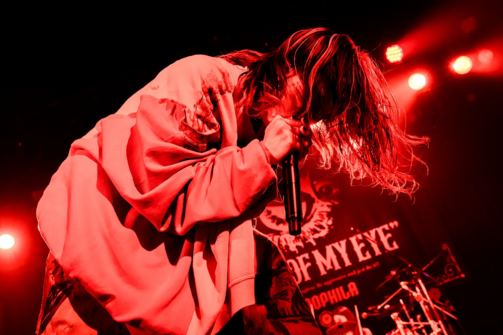 2023年のワンマンツアー「おしくらまんじゅう押されて笑おう」に向けて制作された「OSKR」ではフロアの躍動感とともに熱量を作り出し、NEMOPHILAを語るうえで欠かせない和を始めとしたオリエンタルな要素を含んだラウドロックナンバーたちもダイナミックに響き渡る。新作アルバムの問題作とも名高い「BRAINWASH」は鬼気迫る演奏とmayuのスクリームに息を呑んだ。曲によってはmayuがギターボーカルスタイルを取り、彼女が気持ちを込めてアルペジオを鳴らす様子も、ギターをかき鳴らしながら熱い歌を響かせる様子も胸に迫るものがあった。