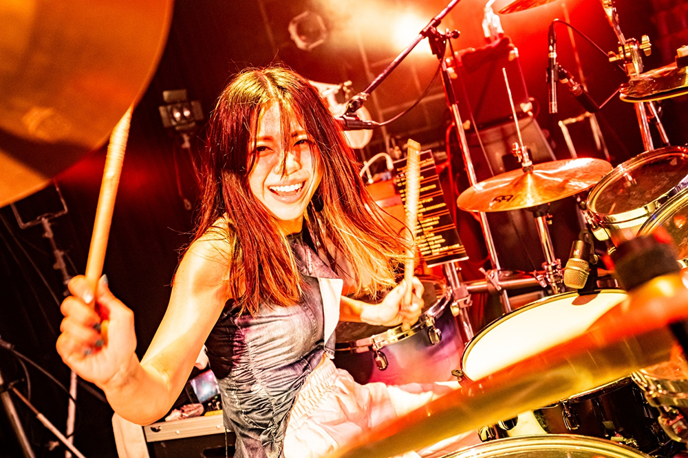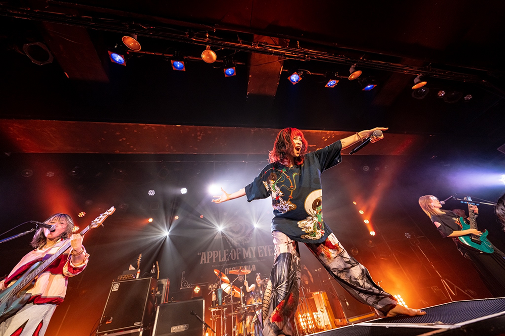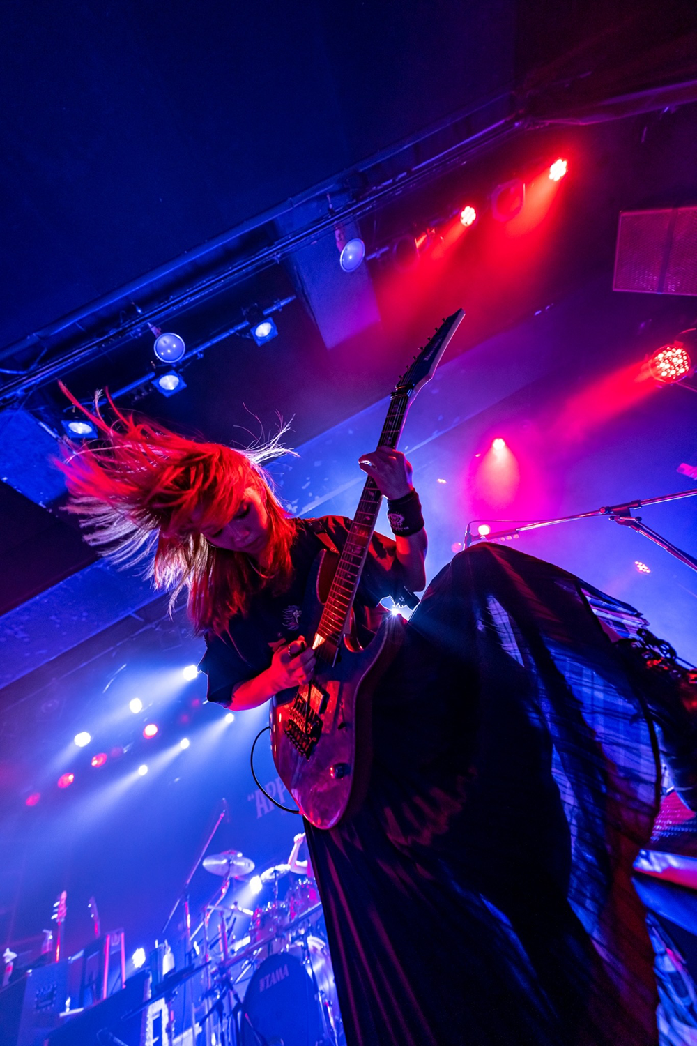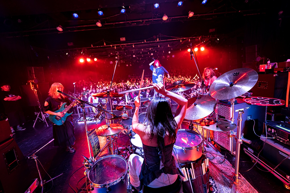ライブの終盤もさらにエネルギーを増すだけでなく、展開の多い楽曲で緩急を用いてドラマチックに彩る場面もあれば、葉月のギターソロをハラグチサンが低音で底上げしたり、センターのお立ち台に華麗に飛び乗ってギターソロを見せる葉月をmayuが巨大うちわで扇いで、美しく髪が靡く風を巻き起こすなど、五感を刺激するステージを繰り広げる。ラストのアウトロのブレイクやかき回しなどからも4人の阿吽の呼吸が伝わり、会場は熱烈な爽快感で満たされた。
