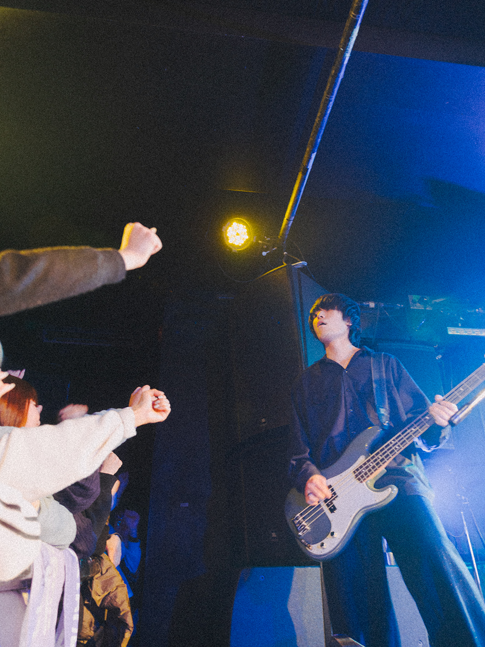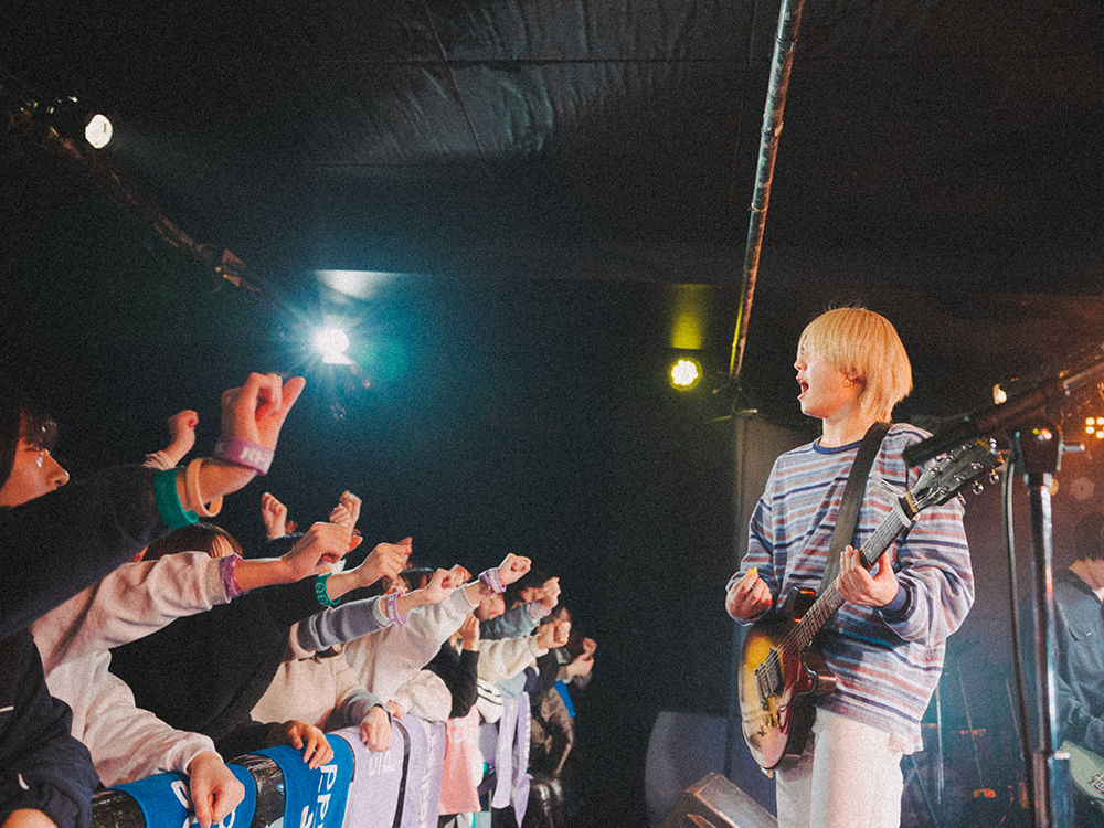 ファン、リスナーを「隣を歩いてくれる人」と形容する皇司の言葉がいい。「ブルーベリーデイズ」を歌う途中、フロアで体調を崩した一人に気づいた皇司が演奏を止め、周囲の連携プレーですぐに処置したのも良かった。良かったという言い方はおかしいが、バンドの年季と、ファンとの絆を強く感じる瞬間。そして「ブルーベリーデイズ」の歌い直しから「カーネーション」、新作EPのリード曲「愛の塊」へ、思い残すことなく駆け抜ける。ファンの大合唱がそれを支える。笑顔と拍手がフロアいっぱいに溢れてる。