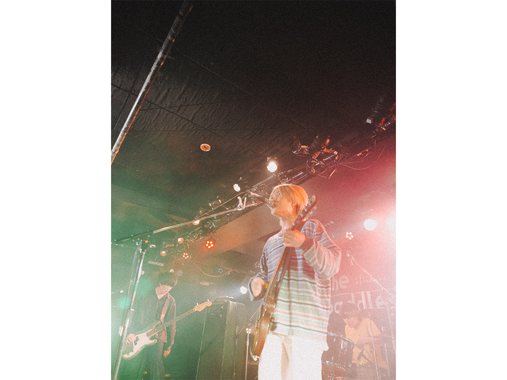 そしてお待ちかね、the paddlesのライブのスタートはなんと「公開リハーサル」だ。大阪で仕事を終えた松嶋航大(Ba)が新幹線に飛び乗って、会場入りしたのはついさっき。「今リハやっていいですか?」という柄須賀皇司(Gt&Vo)の言葉に拍手と歓声で応えるオーディエンス。こういうシーンが見られるからライブは楽しい。