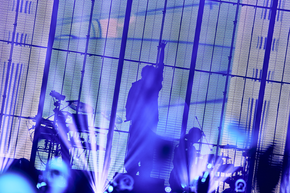 Misumiの呼びかけからなだれ込んだ「オルターエゴ」でステージ前面を覆ったLEDモニターのスイッチが入った。MisumiのVOCALOIDクリエイターとしてのヒットソングをDUSTCELLが武道館へと連れてきたという物語はかなり感動的であるが、そんな感慨に浸る間もなく「Mad Hatter」、「NO PAIN」、「足りない」とたたみかける。その様子はさらなる理想を求めて生き急ぐ若者のように繊細で鋭く、隅々まで青い。DUSTCELLを始める前からふたりが様々な感情を抱えながら音楽や生にしがみついてきたことを、肌で感じる瞬間だった。