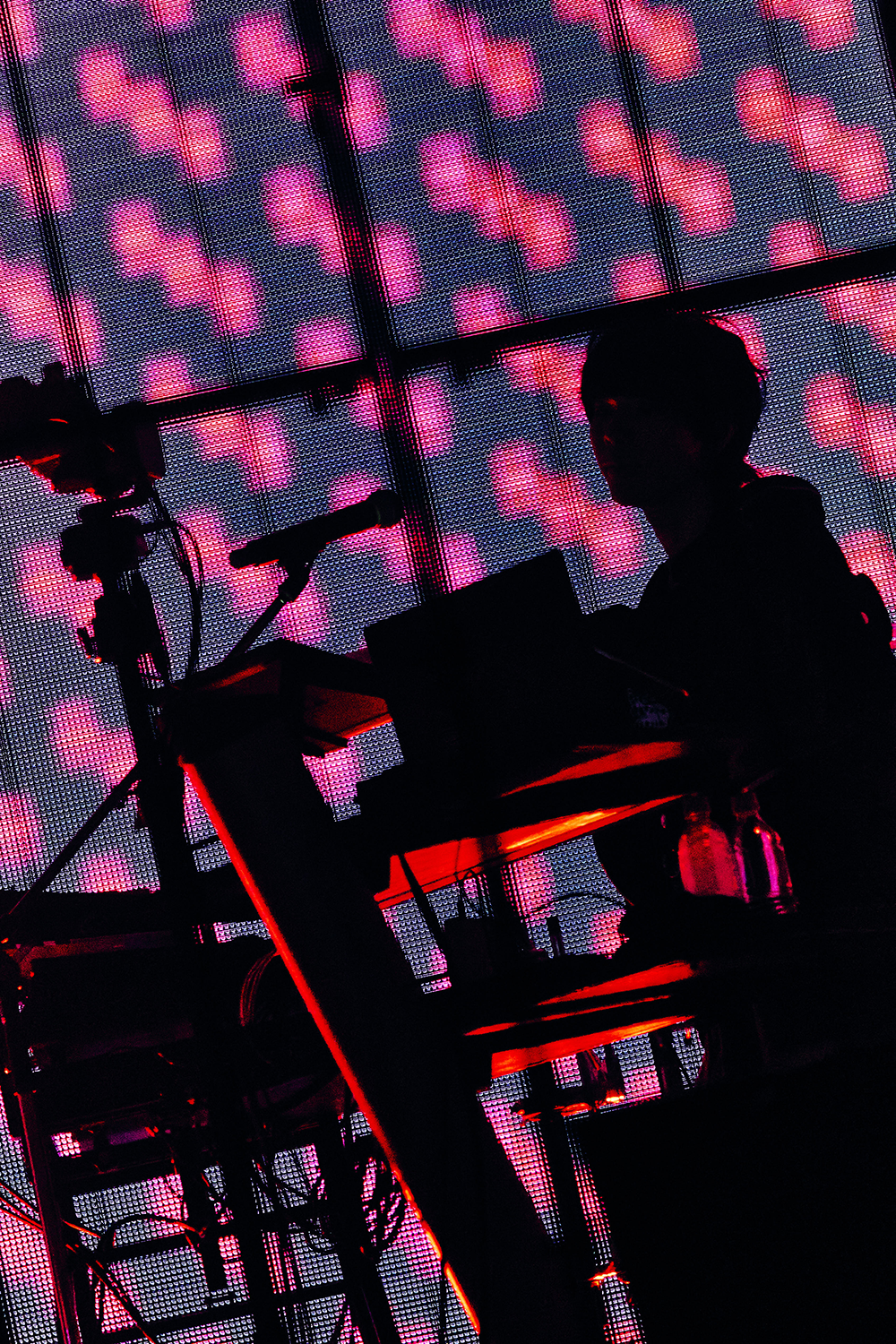 その後は「LAZY」を皮切りにポップな楽曲や柔らかさを持った楽曲を中心に披露する。EMAは可憐さと感傷性を持ち合わせる声で、Misumiは楽曲ごとにタンバリンや電子ドラム、パッド、シンセサイザーなど楽器を使い分けて音色を彩る。「表情差分」「SOPPY」「LILAC」「bibouroku」とじょじょに会場は浮遊感と没入感が漂うような内観的なムードに包まれた。それは自分ひとりだけの世界に落ちていくようでもあり、DUSTCELLの抱えた痛みや悲しみに触れるようでもある。境界線が曖昧になるような感覚に観客も身を委ねた。