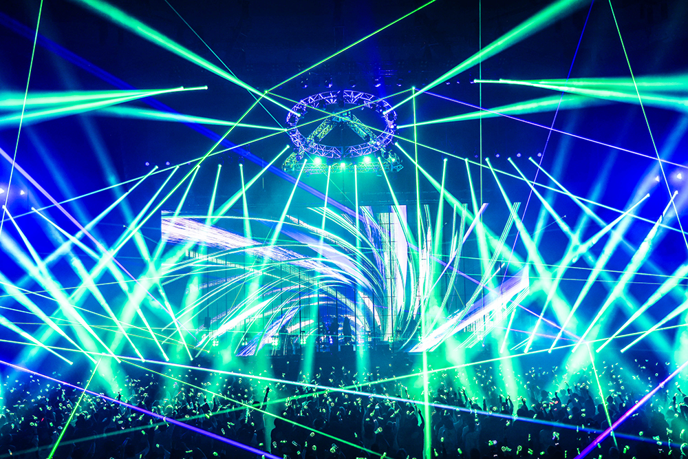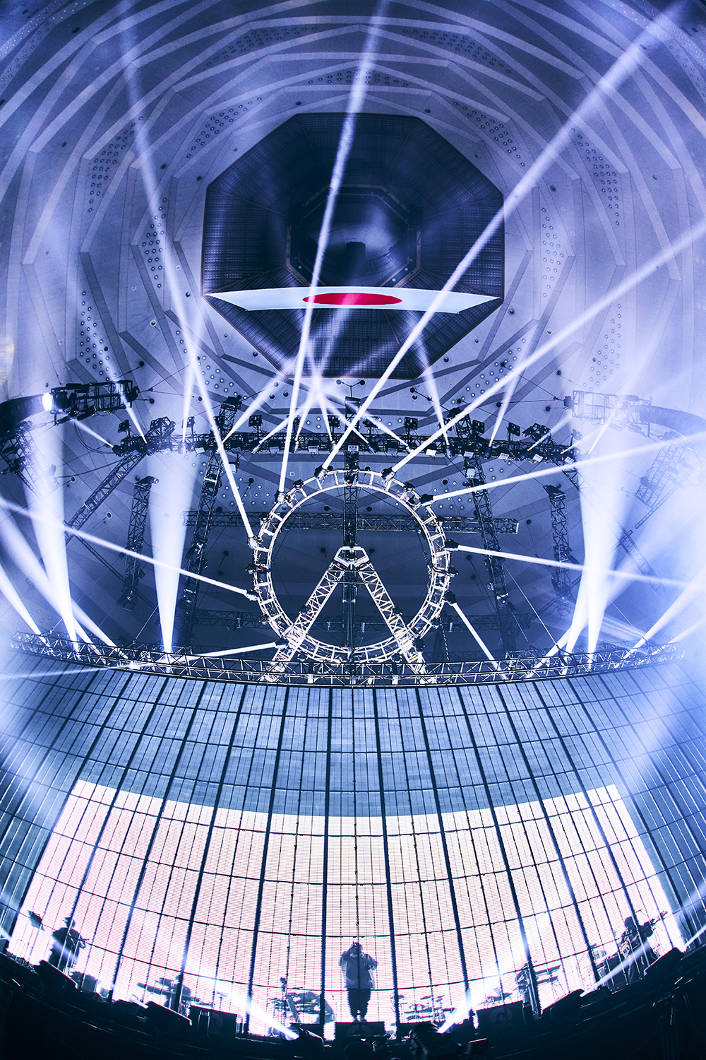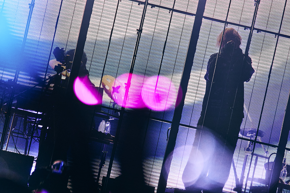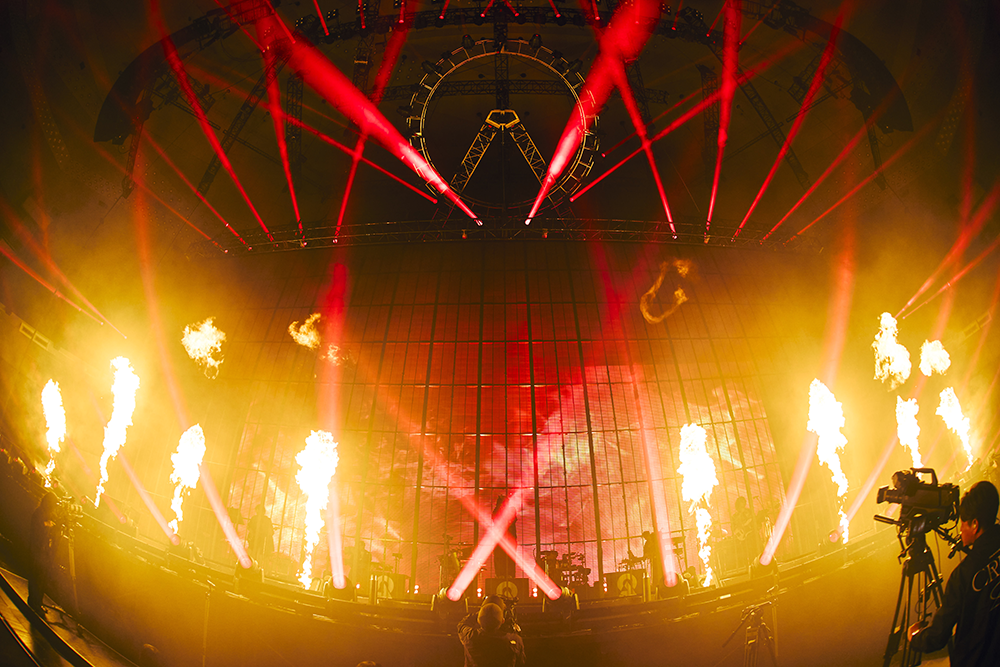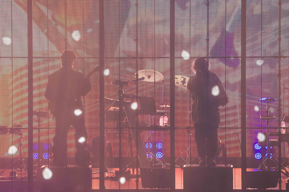 3月でありながら東京23区内でも小雪がちらついた日、武道館のステージは背面と前面にLEDモニターが設置され、その中央にEMAとMisumiのスペースが用意されている。その真上にあるトラスはDUSTCELLのシンボルマークを形作り、ステージデザインからもふたりがこれまで積み重ねてきたことを武道館規模に拡張したライブであることを予感させた。