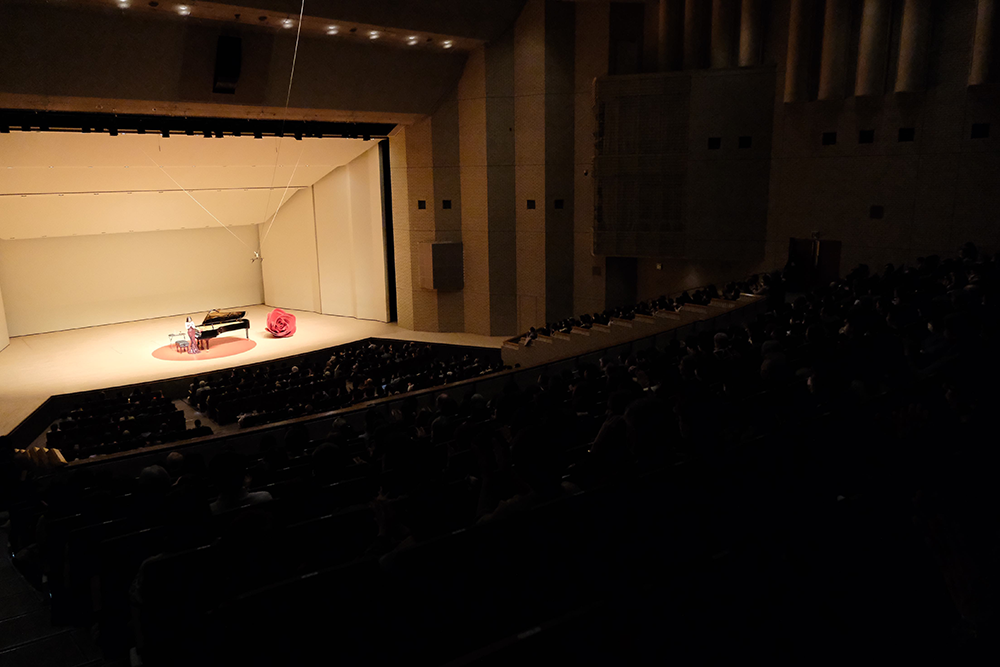 黒を基調としたシックなパンツスタイルで登場した五条院が静かに一礼すると、瞬く間に会場は静寂に包まれた。