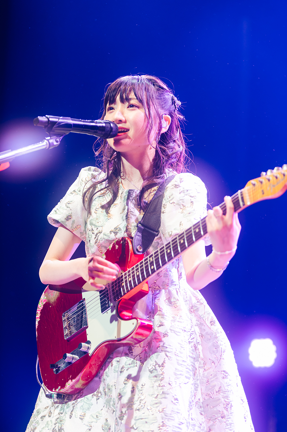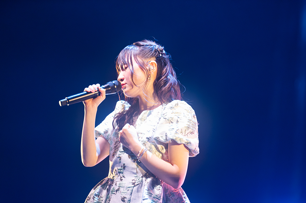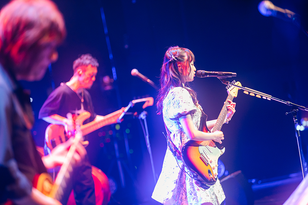 「なかなか夢は叶わないけれども、諦めずに頑張ろうという思いを込めて、(2021年の)弾き語りライブに向けて作った曲です」という言葉から彼女のアコースティックギターと歌声に焦点を当てた楽曲を続けた。「指先の夢」「ペダル」からドラムソロを挟み、バンドアレンジでは初披露となる、2022年の新曲「夢の途中」へ。ミニマムなアカペラからバンドアンサンブル、静から動へというダイナミックな構成のサウンドとともに、夢に向かって努力する過程での挫折や葛藤、迷いといった心の内側を吐露する繊細な歌声に惹きつけられた。