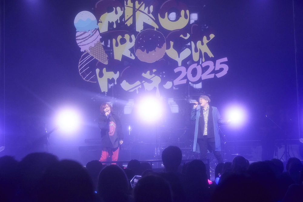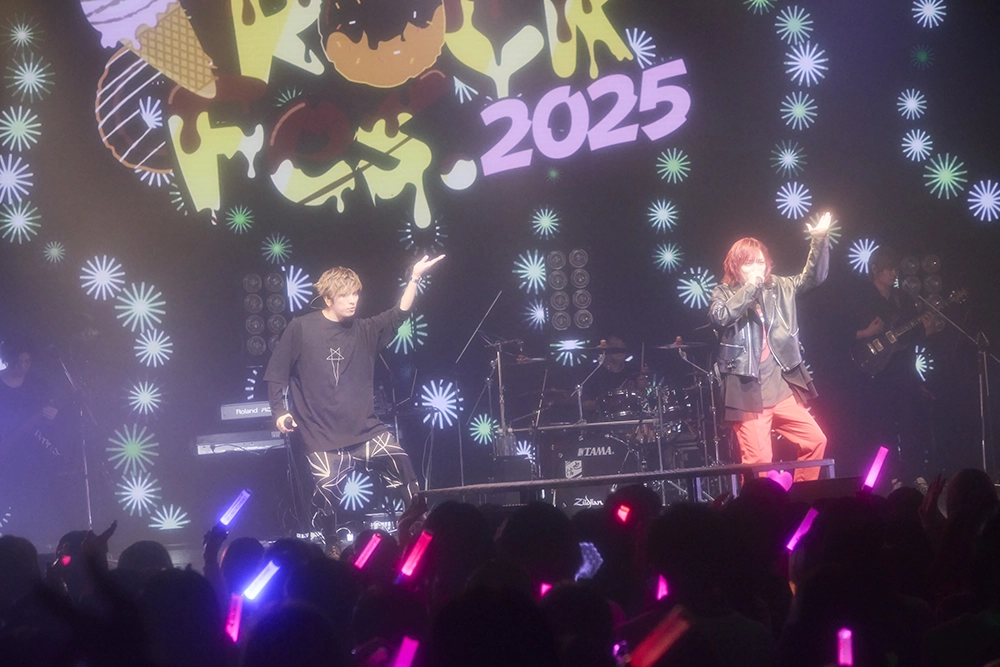 「花粉症の方?」とシリアスなムードを吹き飛ばすような話題をぶち込み、その流れで「お誕生日おめでとうございます」と4日前にバースデーを迎えたピコを呼び込む。花粉症の流れを受け、ピコがある花粉症の薬をタイトルコールするとフロアは大爆笑。2人の絶妙なトークで盛り上げたあとは、アニメ『推しの子』のOP曲「ファタール」をうみくんとピコが、心地よく抜けていくハイトーンを使った歌とロボットダンス(?)で楽しませた。