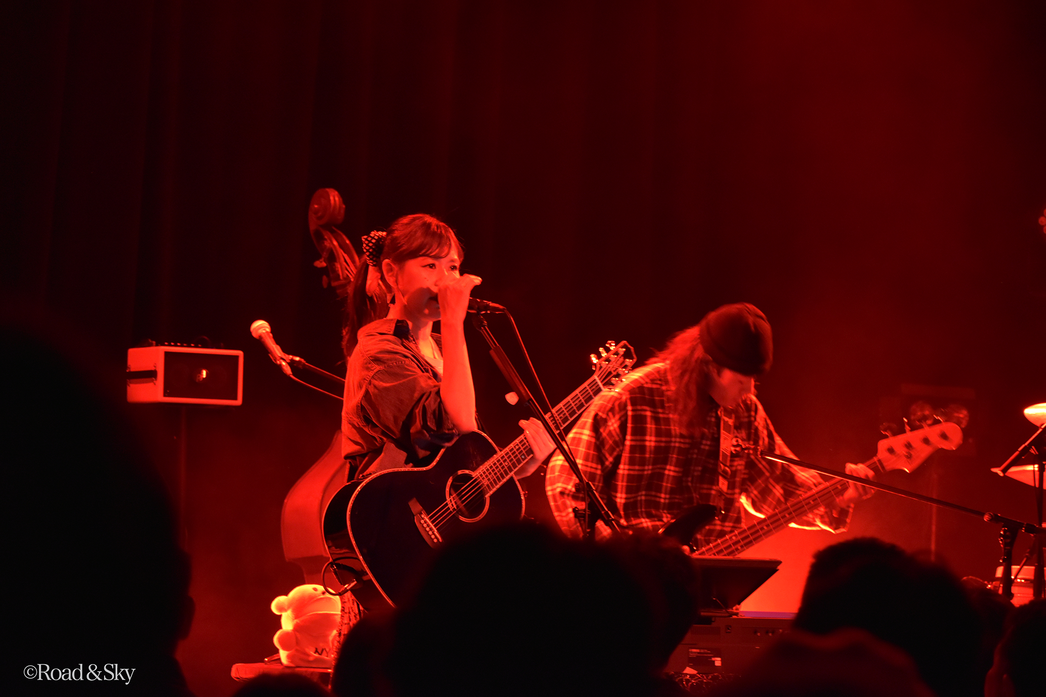 アンコールではまず中嶋と石成が登場し、2人編成で「桜ひとひら」を披露する。石成のギターのアルペジオは桜の花びらがひらひらと舞う様子を想起させ、桜の花の美しさを体現したメロディやボーカルと合わさって、空間を桜色に染め上げた。すると小川と若森のリズム隊もステージに登場し、ビートでつないで「なんでなの!?」へ。観客も高らかなクラップとシンガロングで楽曲に参加し、ライブならではのハッピーな一体感を作った。