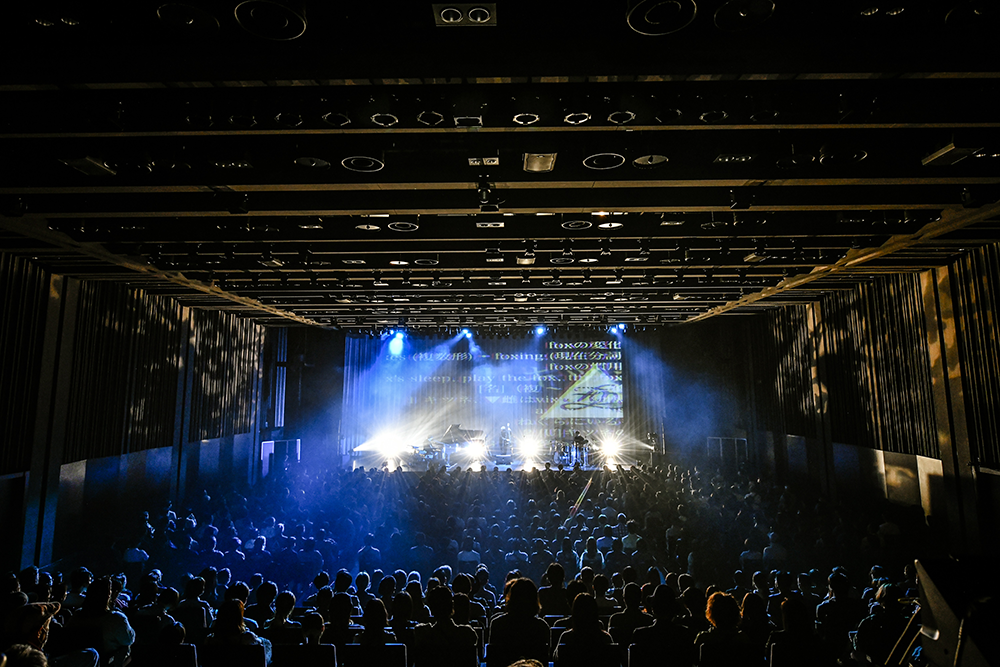 続いてアルバム『DEEPER』の中から「GOLD&TURQUOISE」「Across the Reef」と、ジャズ/フュージョンのエッセンスの濃いメロディアスでグルーヴィーな曲を連ねてじっくり聴かせ、「Waterfilm」の後半から、ダンスビートへチェンジして一気にテンポアップ。ライブの定番曲「エイジアン・ダンサー」から、どちらも数年振りに演奏するという「beyond the beyond」「Flexible」へ、懐かしい曲をたたみかけてぐいぐい盛り上げる。ロックバンドがやるダンスロックとは一味も二味も違う、超絶スキルを駆使したロックとジャズとダンスの激突がとことんスリリング。観客も拍手喝采で大騒ぎだ。