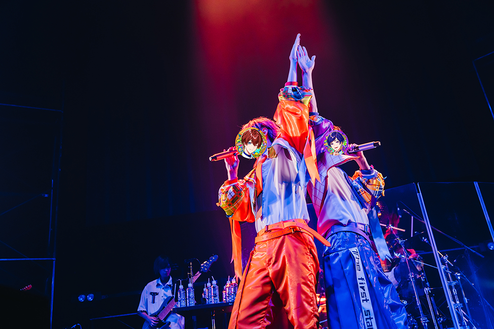 RPGゲーム風のオープニングムービーの後、バックバンドの演奏に乗せてメンバーカラーの衣装をまとった5人が登場。キュートなダンスや8bitサウンドがキャッチーな「俺たち、ハチャメチャゲーマーズ!」、5人のチームワークを感じさせる「世界を救え!へっぽこ勇者のRPG」と“すたぽら×ゲーム”を強く印象づける楽曲でオープニングを飾る。最初のMCパートでは挨拶と自己紹介のあと「昨日に続き今日も超満員」と感謝を告げ、気さくに声を掛けながら観客の興奮をリラックスさせた。