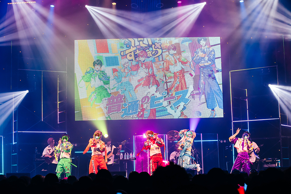 すたぽらの無邪気なキャラクターを詰め込んだ自己紹介ソング「すたぽらってなぁに?」、家でついついだらだら過ごしてしまうというあるあるソング「怠惰依存症候群」と子どものような遊び心いっぱいの楽曲を届けた後は、幕間映像『歌い手だって旅がしたいっ!!! 右左どっち旅行』へ。他公演で放映された、メンバーがアクティビティに挑戦する『すたぽらブレイクラッシュ!!!』をクリアしたご褒美旅行を、次々と出題される2択に挑戦しながら楽しむという内容だ。普段はイラストやライブ2Dで活動するメンバーがリゾートを満喫する映像に、観客も熱心に見入った。