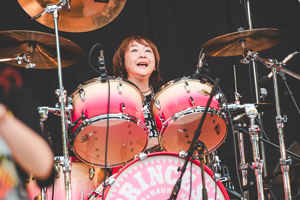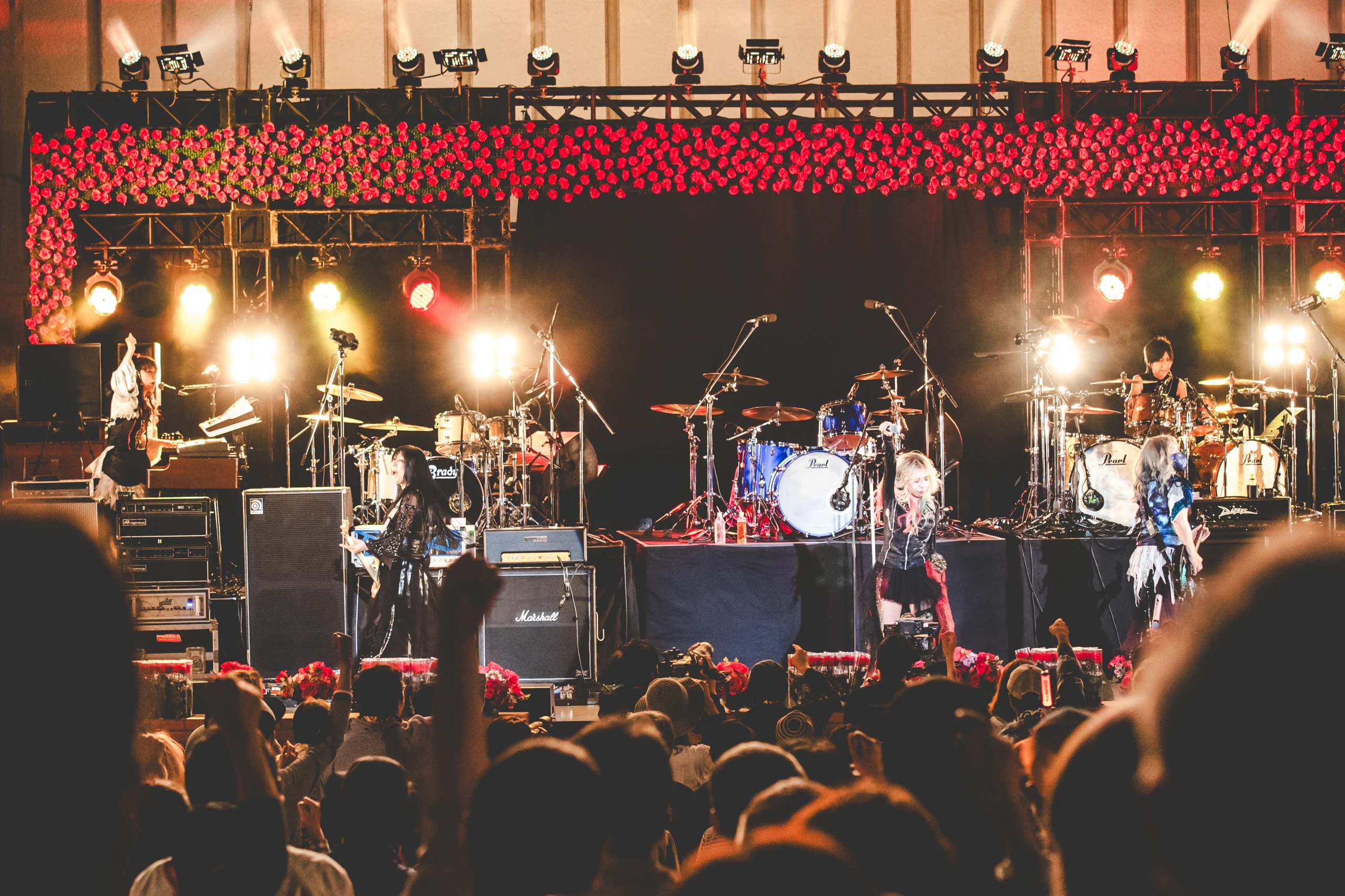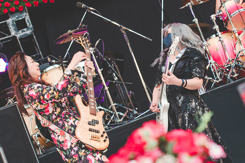 続く、“PRINCESS PRINCESS”のコーナーでは、本家のメンバーである渡辺敦子(Ba)、富田京子(Dr)も登場し、寺田とmayu(NEMOPHILA)、ALICE(Risky Melody)、凪希(HAGANE)、そしてアンジェリーナ1/3(Gacharic Spin)というボーカル陣で、「19 GROWING UP」、「M」、「Diamonds(ダイアモンド)」と、プリプリの名曲を披露。MCでは貴重なエピソード満載な、SHOW-YAとプリプリの仲良しトークで盛り上がり、その微笑ましい光景が観客を笑顔にした。
