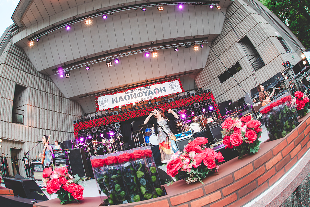 1987年の第1回開催から数えて、実に19回目(!)の開催であり、今秋より日比谷野音の改修工事が予定されているため、現体制での開催はいったんラストとなる今回。会場を埋め尽くす『NAONのYAON』ファンが開演を待ち望む中、OPアクトのGIRLS'F1ST!!!!GTのフレッシュなアクトに続き、オーガナイザーである寺田恵子(SHOW-YA)がステージに登場!
