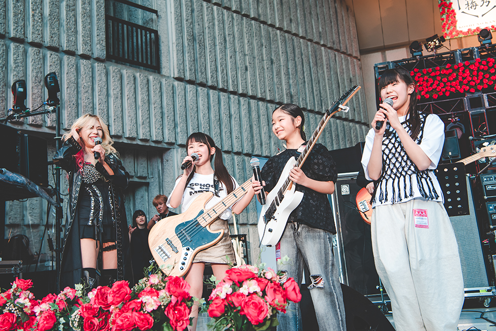 トップバッターのNEMOPHILAがヘヴィなサウンドに乗せた伸びやかな歌声を青空に響かせて勢いを付けると、去年はOPアクトで出演したRisky Melodyがエネルギッシュなステージで駆け抜ける。さらにキュートなルックスとは裏腹に、ハードで硬派なロックチューンで圧倒したHAGANEと続き、ガールズロックシーンの未来を担う、頼もしい若手たちが堂々たるステージで会場を沸かすと、「若手あっぱれ!」と寺田が賛辞を送った。