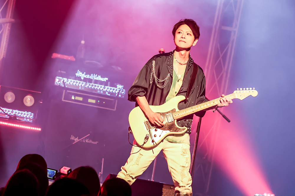 みくの「ぶち上がっていきましょう!」という言葉とともに立て続けに披露されたのはアンカフェのヒット曲と言えるシングルたち。照明が客席を照らした「流星ロケット」ではtakuyaのギターとゆうきの鍵盤がキラキラ感と彩りを与え、2024年の9月に16年ぶりに新たなMVが公開され、今年、2025年Ver.が配信された「Cherry咲く勇気!!」ではみくが客席にマイクを向け、カノンが下手から上手に移動し、takuyaはセンターでギターソロ。色褪せないメロディと歌詞が今年の春を躍動させていき、「覚醒ヒロイズム」ではコール&レスポンス。3曲が終わるとメンバーの名前を口々に叫ぶ声が響きわたった。
