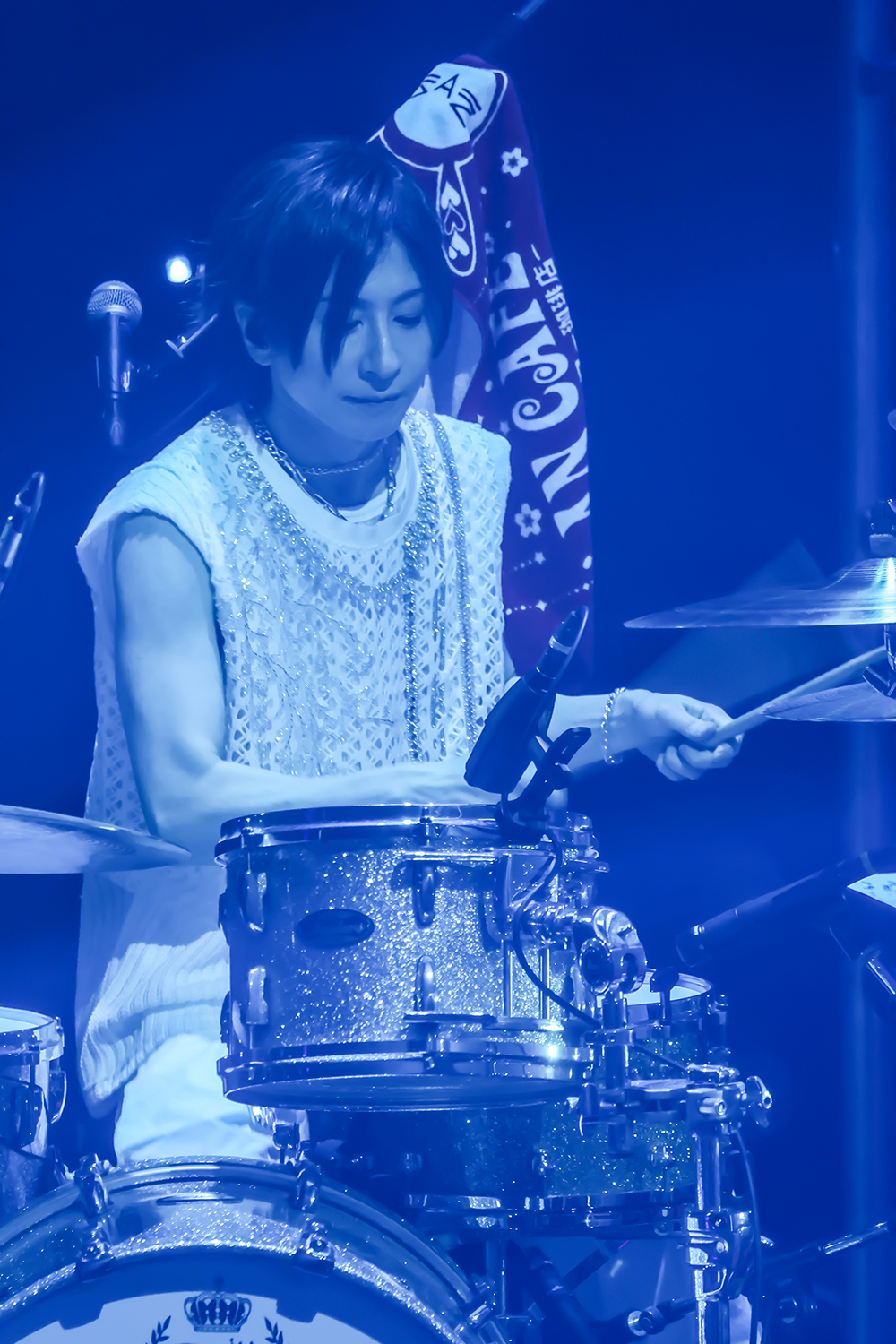 そして、今回の2デイズには終演後に更なるサプライズが用意されていた。ニャッピーアイコンが照明によって妖しく光り、鐘の音が鳴り、不穏な雰囲気の中、ステージに和装で現れたのは今年、MVが公開され、配信もされた謎の覆面バンド、八咫ノ仮面 -YATANO KAMEN-。その正体は直前にメディアで明かされていたため、知っていた人もいたと思うが、ザワつく場内に向かって自己紹介をし、噂のナンバー「祈奉」を投下。ハイトーンからデスボイスまで自在に操るボーカル、地の底まで響くヘヴィなサウンドで圧倒し、最後は無言のまま去っていった。オープニングアクトならぬエンディングアクト? アンカフェのみならず、八咫ノ仮面 -YATANO KAMEN-の今後の動向からも目が離せない。