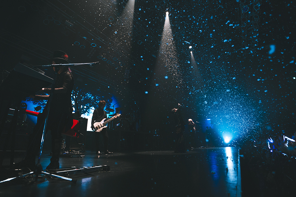 その感動を吹き飛ばすように、バンドは「漣のロンド」を投下。ここでは歌詞に合わせて観客たちがペンライトをグルグル回して大盛り上がり。そうして苑の「ラスト~!」というかけ声で「六花」が始まると、バックの大画面にメンバーの姿をが映し出され、フロアは驚いた様子で狂喜乱舞!燿のベースを弾く手元のアップ、響はカメラを向けられると自ら距離を縮めて変顔でファンサをするなど、衝撃的に楽しい「六花」のパフォーマンスで本編は終了。メンバーがステージを立ち去ったあとは、ツアーのファイナルらしく、画面に本ツアーのスケジュール、スタッフロールが映し出されていった。