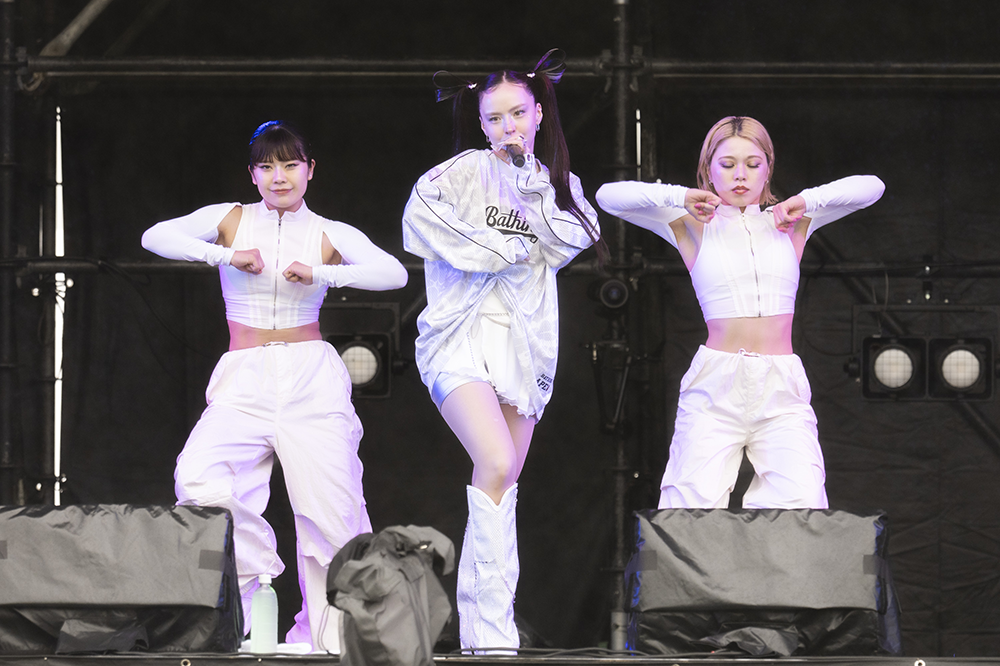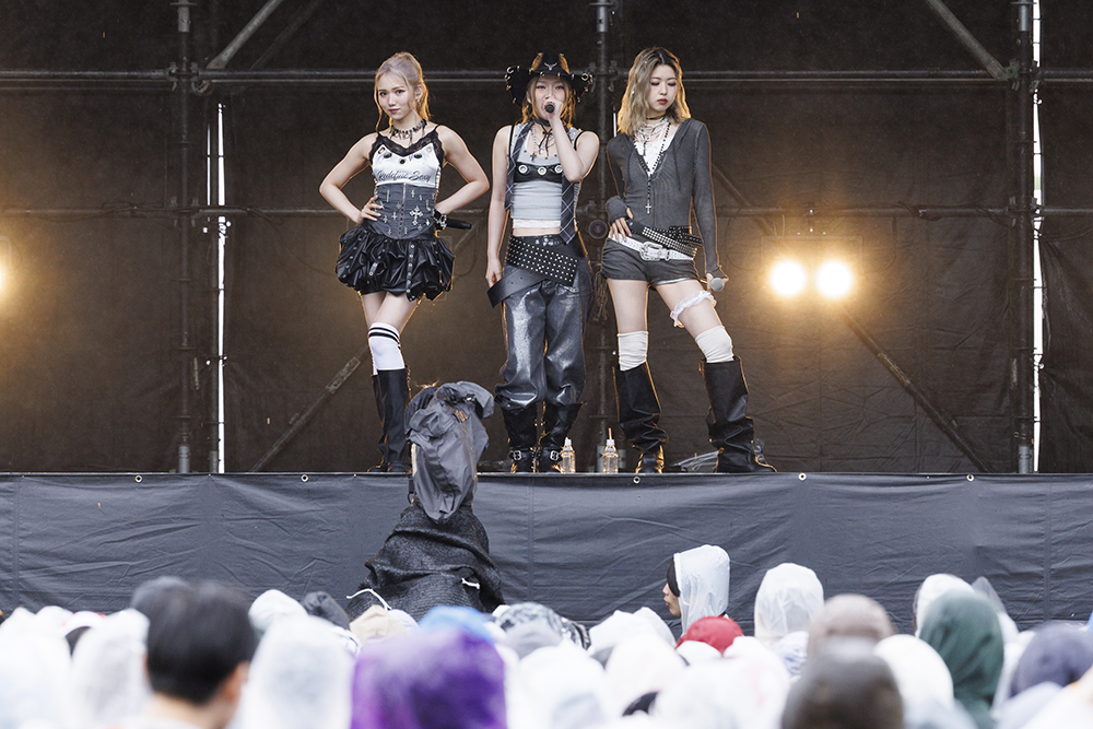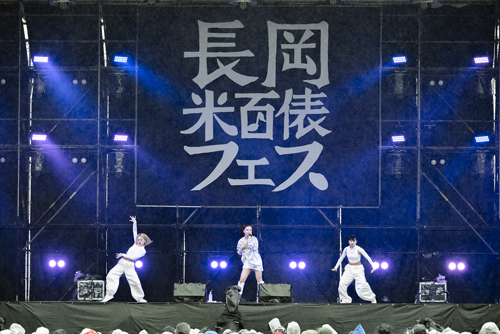 アーティスト登場時に流れるのは、長岡出身の「Creepy Nuts」のDJ松永が提供した和テイストのジングル。10時半にジングルが流れると、ハーフの歌姫・輝叶がダンサー2人を従えてステージの中央に姿を見せた。セクシーなダンスと歌でわかせた「Bon Voyage」では、ツインテールを揺らしながら、パフォーマンス。MCでは「初めまして。今日のながおか米フェス。オープニングアクトを務めさせていただく輝叶と申します」とあいさつ。雨が強くなった空を見つめると「めっちゃ雨降ってる。体調崩さないように」と観客を心配していた。「昨年デビューして1年ぐらいなんですけど、めっちゃあがり症なんです」と抱えている緊張が伝わるようにつっかえながら話すと「みんなで世界をあったかくして、そしたら太陽出てくれるかな…そういうテンションでやっていきたいです」と思いを伝えると、大きな拍手が送られていた。「ちょっとチルっぽい感じで聴いてください」と伝えた2曲目は、ドラマ「フォレスト」のオープニング曲に起用されたバラード「For Love」。「口カラッカラ」と明かしたたどたどしいMCから一変。愛しい思いを、堂々と歌い上げた。再びダンサーを招き入れた最後は、「デビュー曲を歌いたいと思います。聴いてください」と「ICY」を熱唱。オープニングアクトの大役を見事に務め上げた。